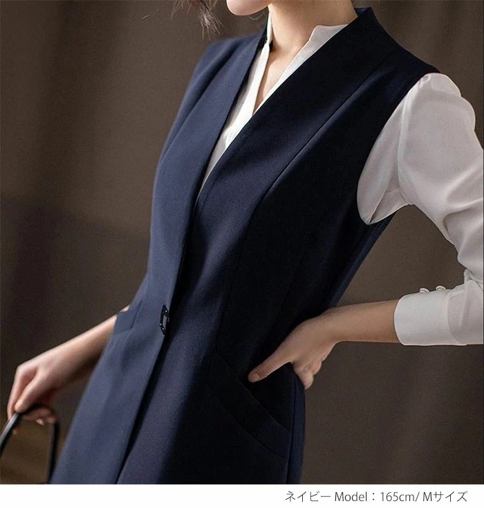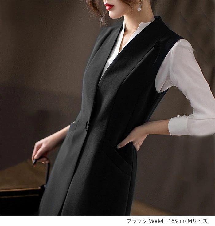ジレ レディース フォーマル 春 夏 ロングジレ ロングベスト ノースリーブ きれいめ トレンチベスト ロング丈 スーツ ベスト アウター 大きいサイズ ブラック ロング丈 カジュアル シンプル 通勤