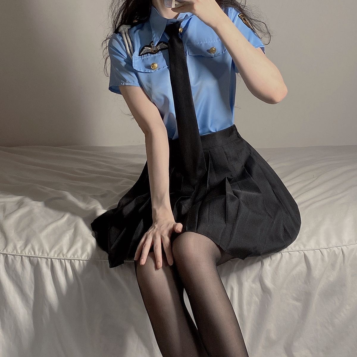 POLICE コスプレ ストッキング帽子付き 6点セット ミニスカ コスプレ 制服 イベント ハロウィン ネクタイ シャツ プリーツスカート