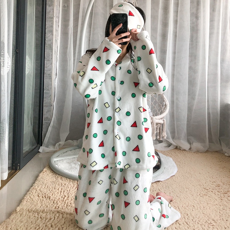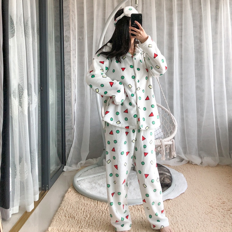 秋冬 レディースパジャマ ファッションルームウェア クレヨンしんちゃん 上下セット もこもこ 厚手暖かいナイトウェア 韓国 人気 部屋着 保温 防寒