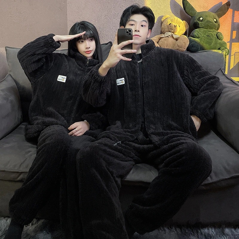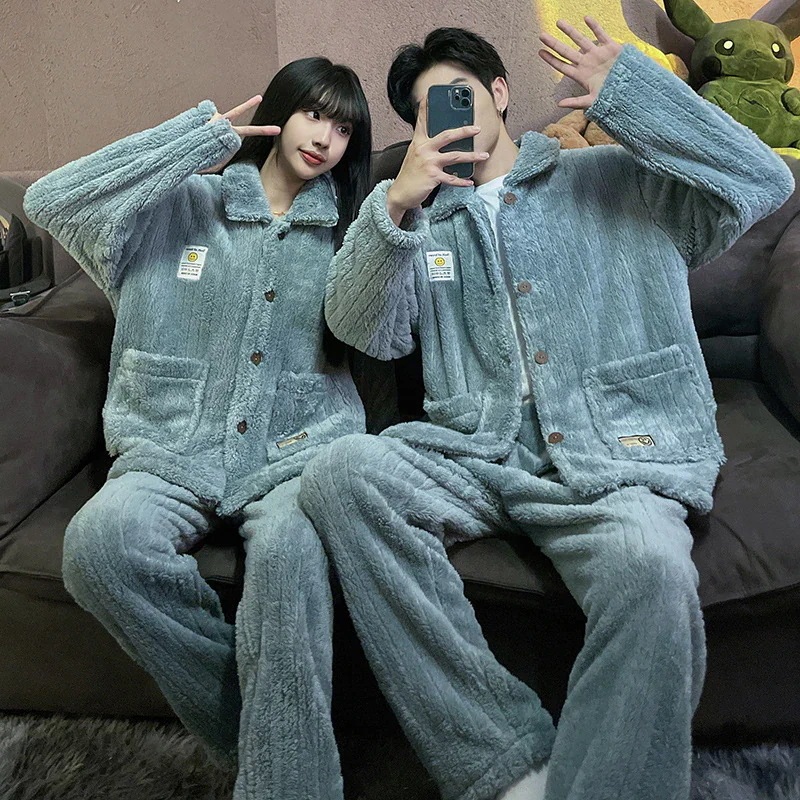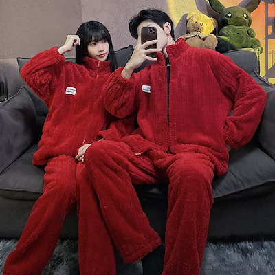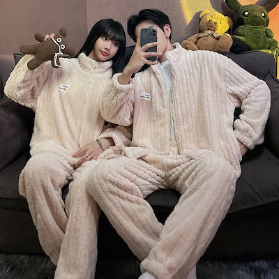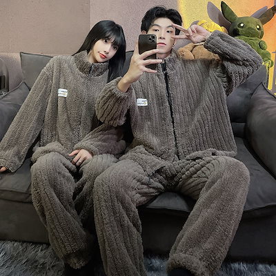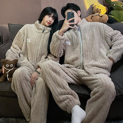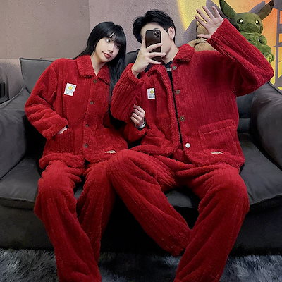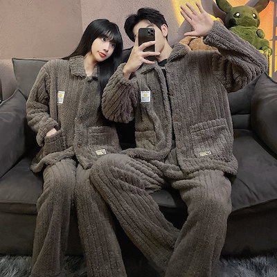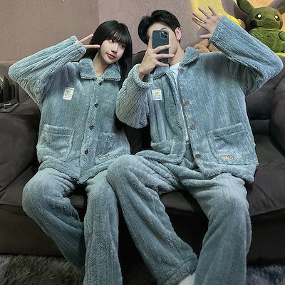 秋冬 レディースパジャマ ファッションルームウェア 上下セット 長袖 メンズ ペア 前開き もこもこ 結婚祝い プレゼント 韓国 人気 部屋着 保温 防寒