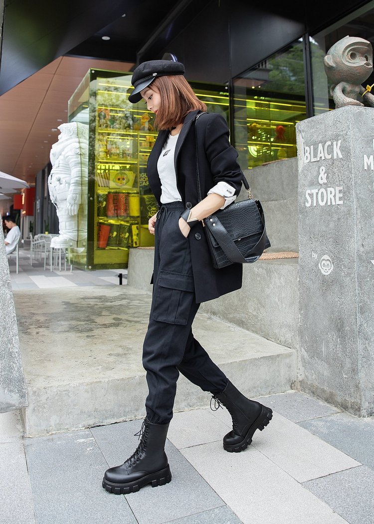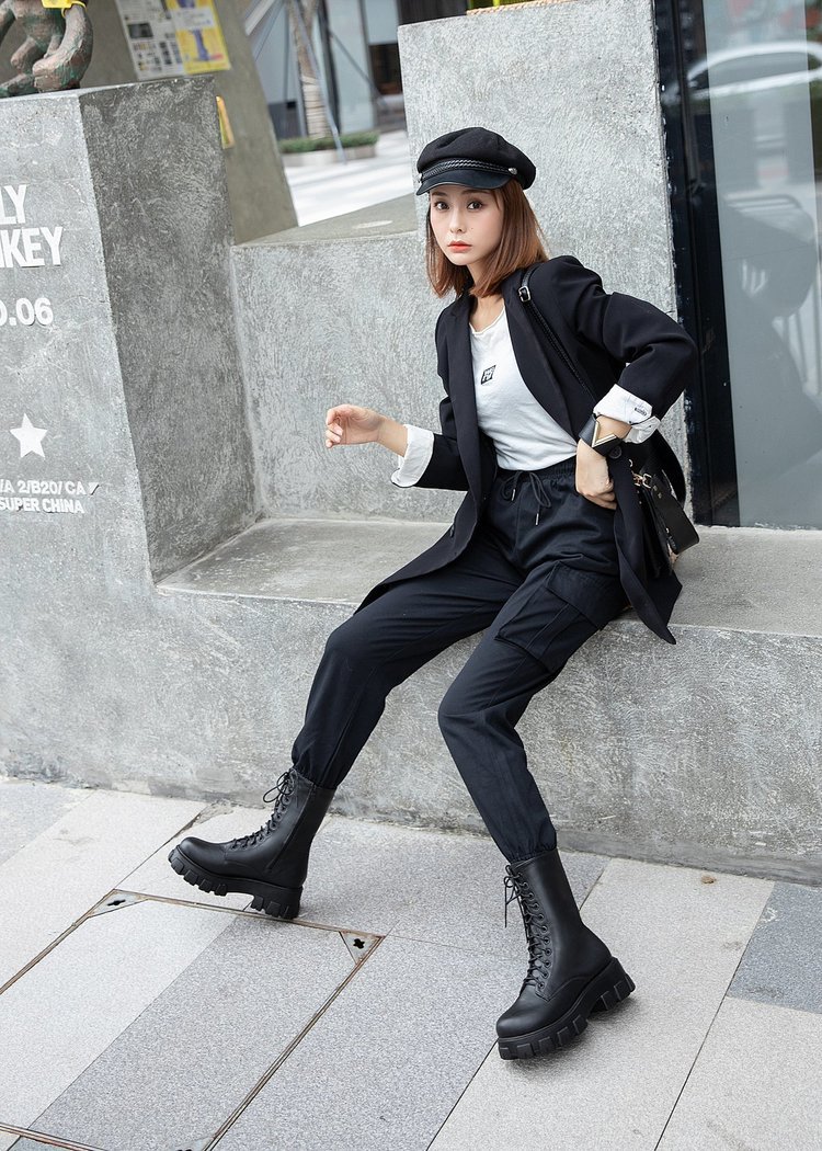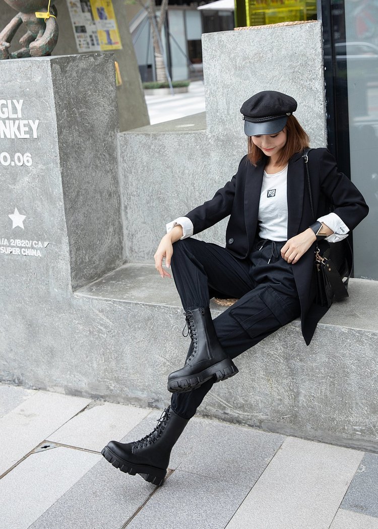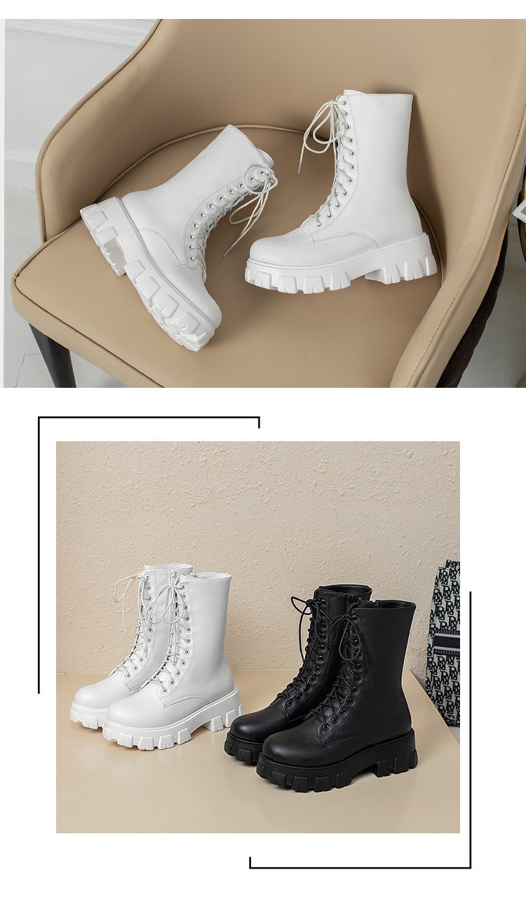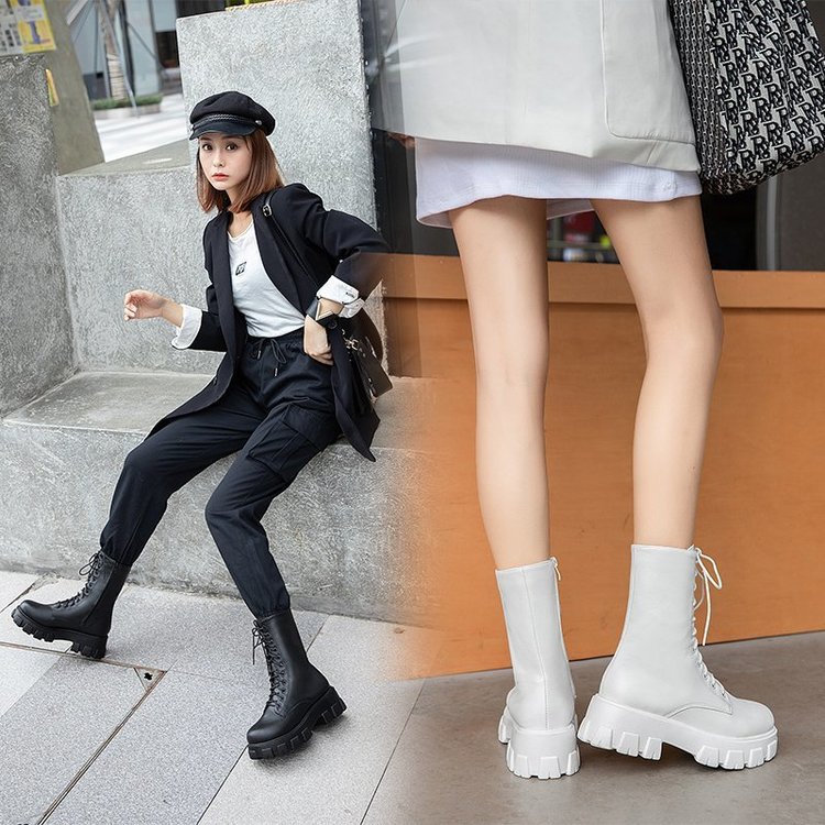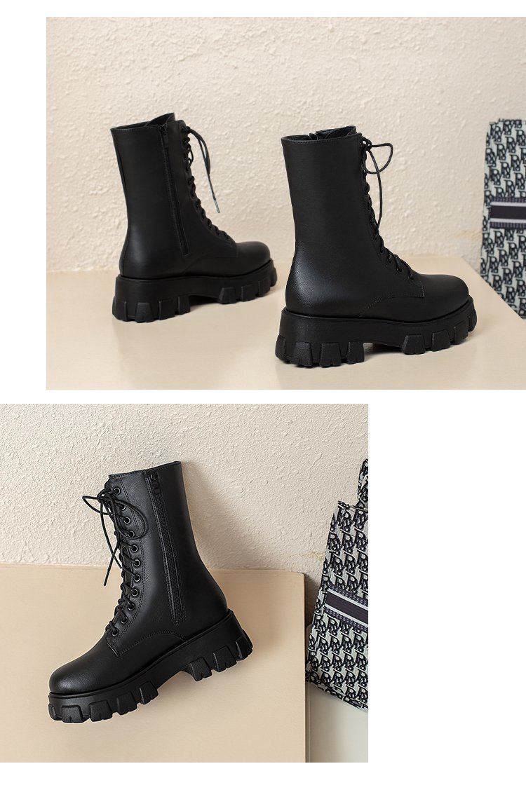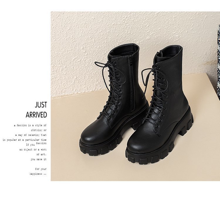 人気ロングブーツ 2024秋冬新作ミドルブーツ英国風サイドジッパー太ヒール機関車ブーツ厚底シューズ ショートブーツ レディース ブーティー マーディンブーツ