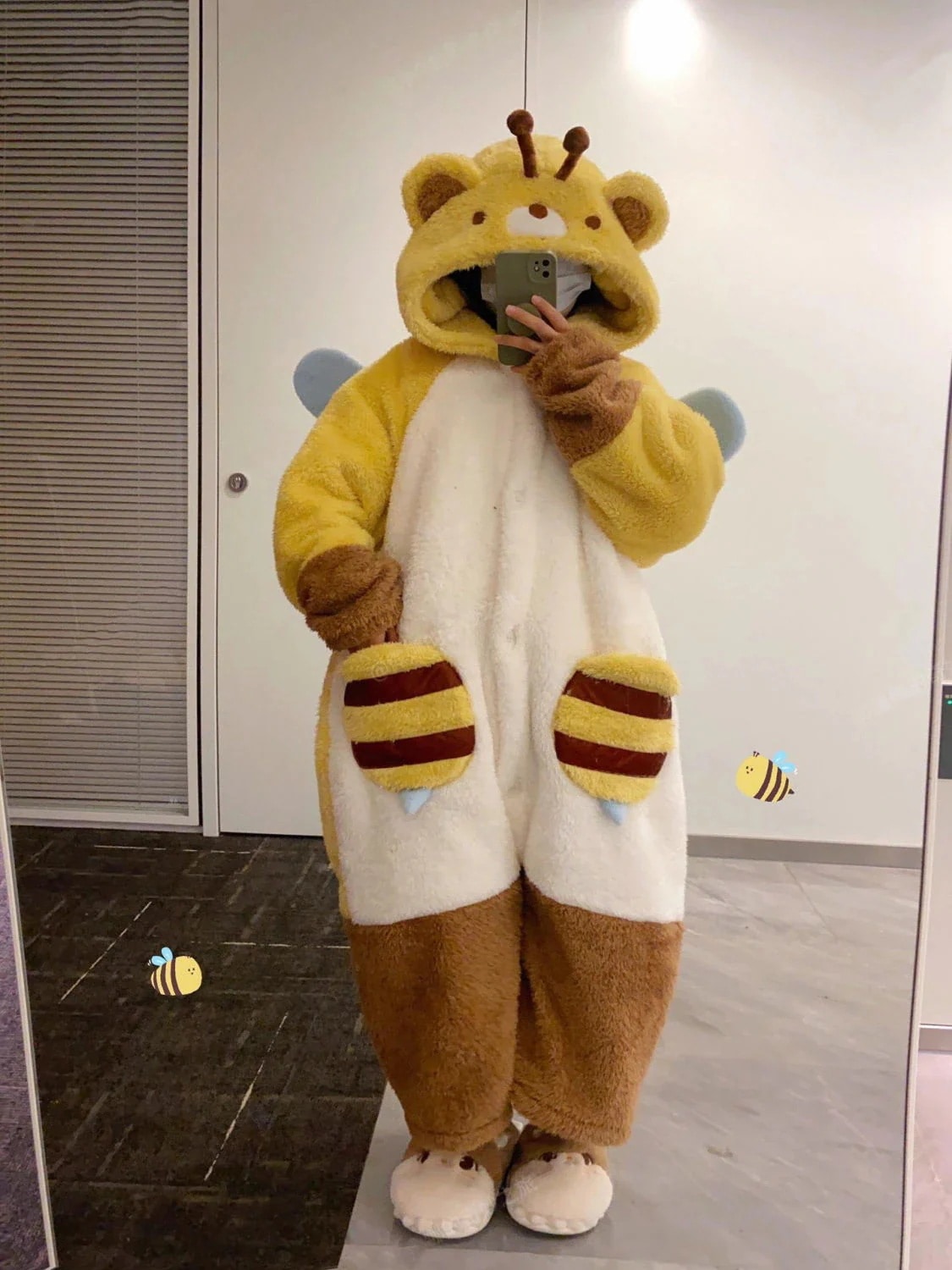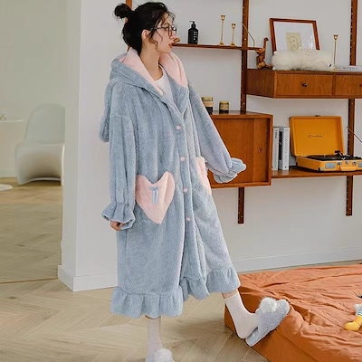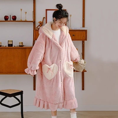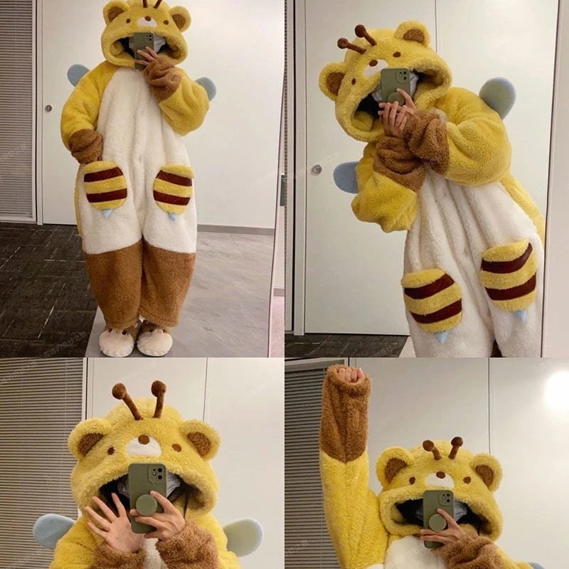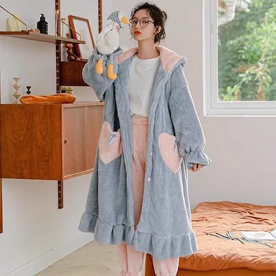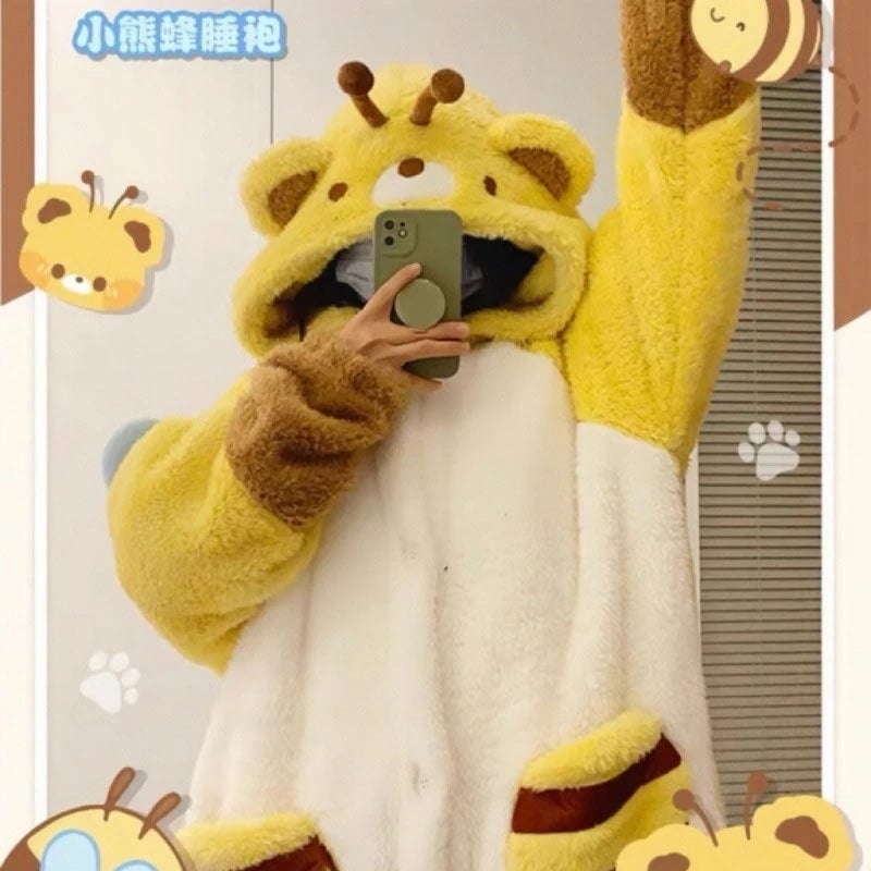 人气新作あったかルームウェアかわいいミツバチ ウールのガウン 男女同じカップル秋冬 サンゴのパジャマ ロングタイプ 部屋着セット パジャマ