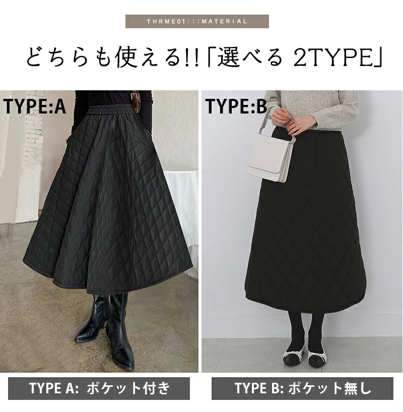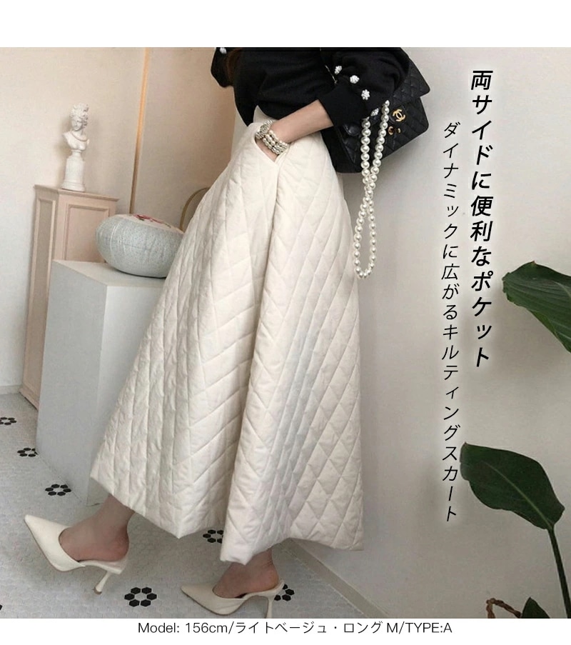 キルティング スカート 赤外線中綿 レディース 秋冬 ボトムス ロング ミモレ丈 膝下 ロングスカート フレアスカート Aライン フレア きれいめ 中綿 暖かい 撥水 大き