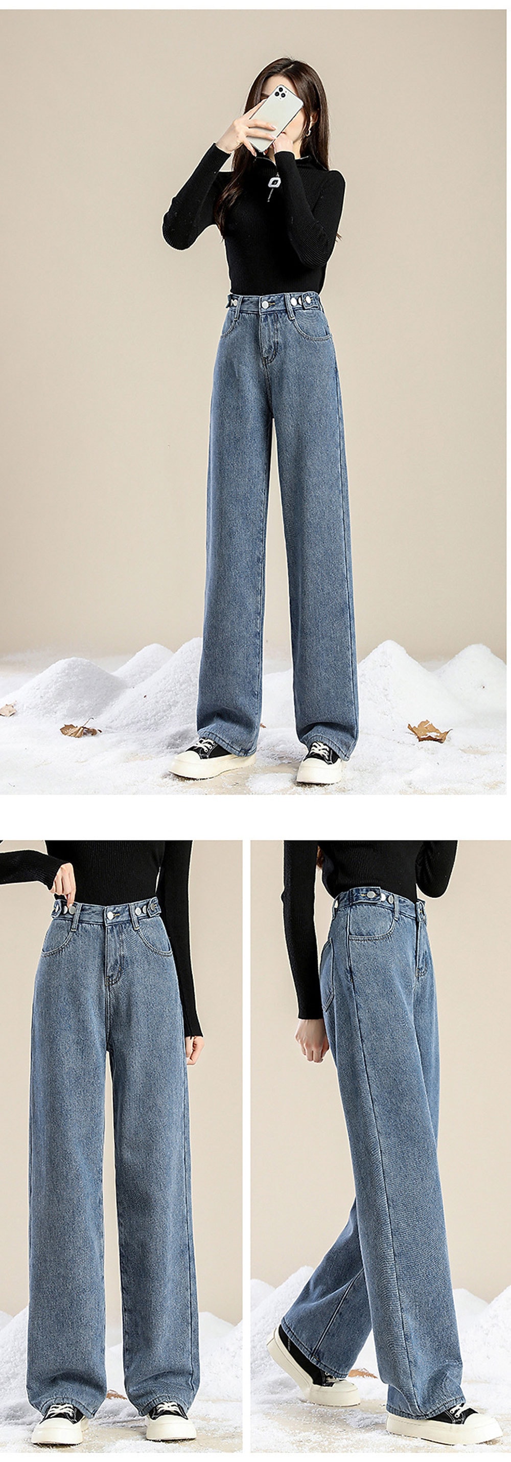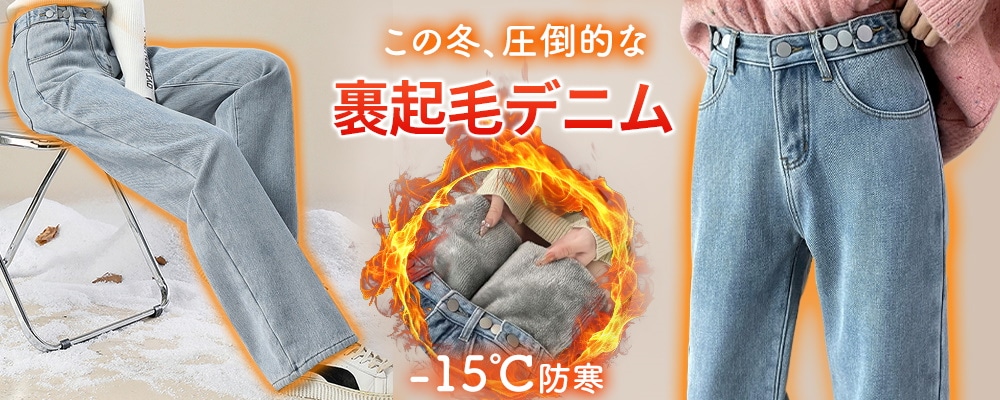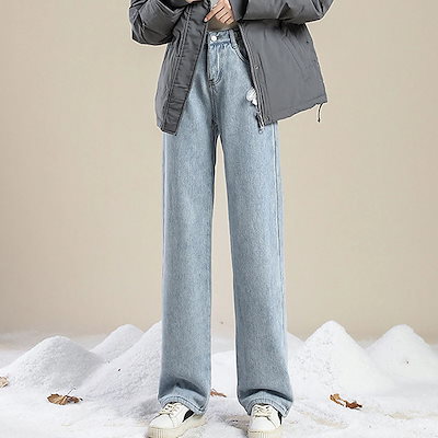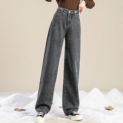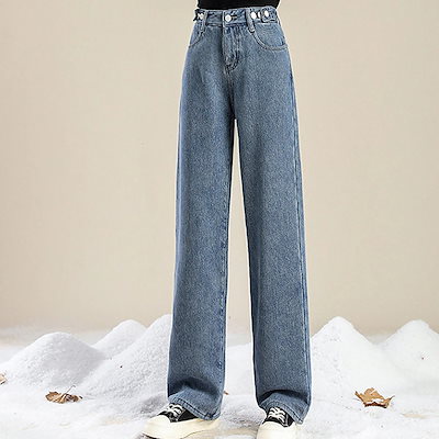 -15℃防寒 極暖裏起毛 ワイドデニム ウエスト調節可能 裏起毛ロングパンツ 防寒 超暖 ゆったり 通勤 ぽかぽかパンツ ぬくぬくパンツ脚長効果抜群 レディース