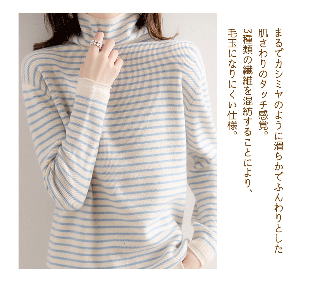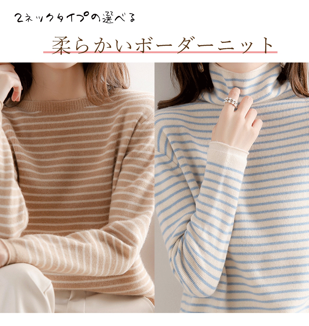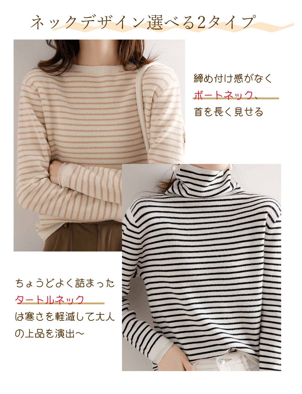 ニット セーター 2タイプネック ボートネック ハイネック タートルネック レディース ボーダー 長袖トップス 秋冬ニットセーター 薄手 防寒 着痩せ カジュアル