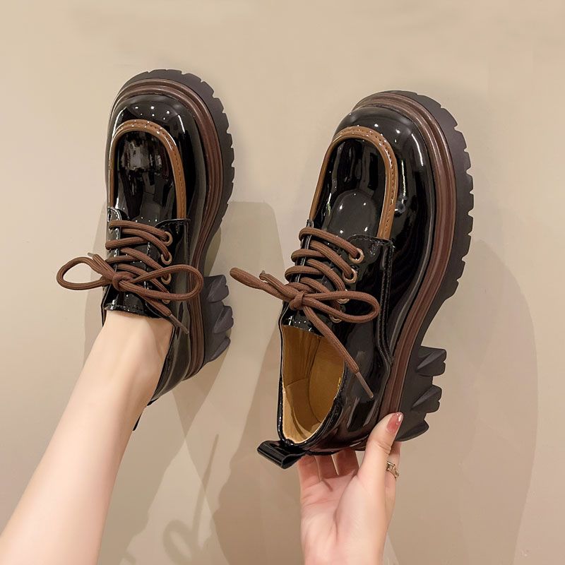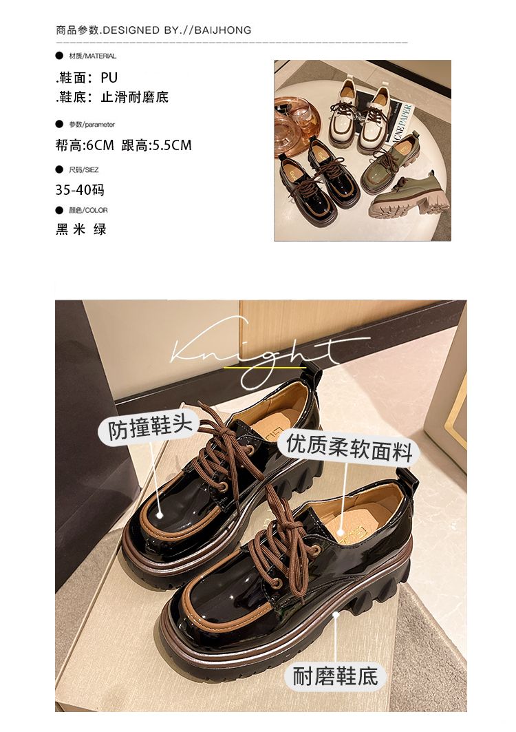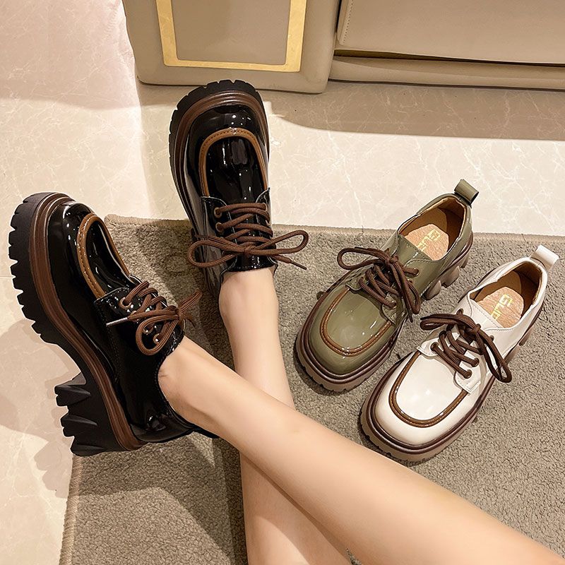 厚底シューズ 35-43 大きいサイズ 太ヒール 革靴 英国風 レースアップ 製 メリージェーンシューズ 42 レディース 韓国ファッション