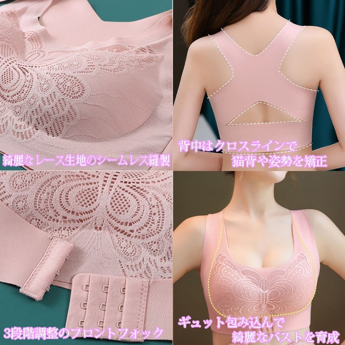 ノンワイヤーシームレスナイトブラ フロントホックブラ 育乳ナイトブラ シームレス レディース 下着 ノンワイヤーブラ