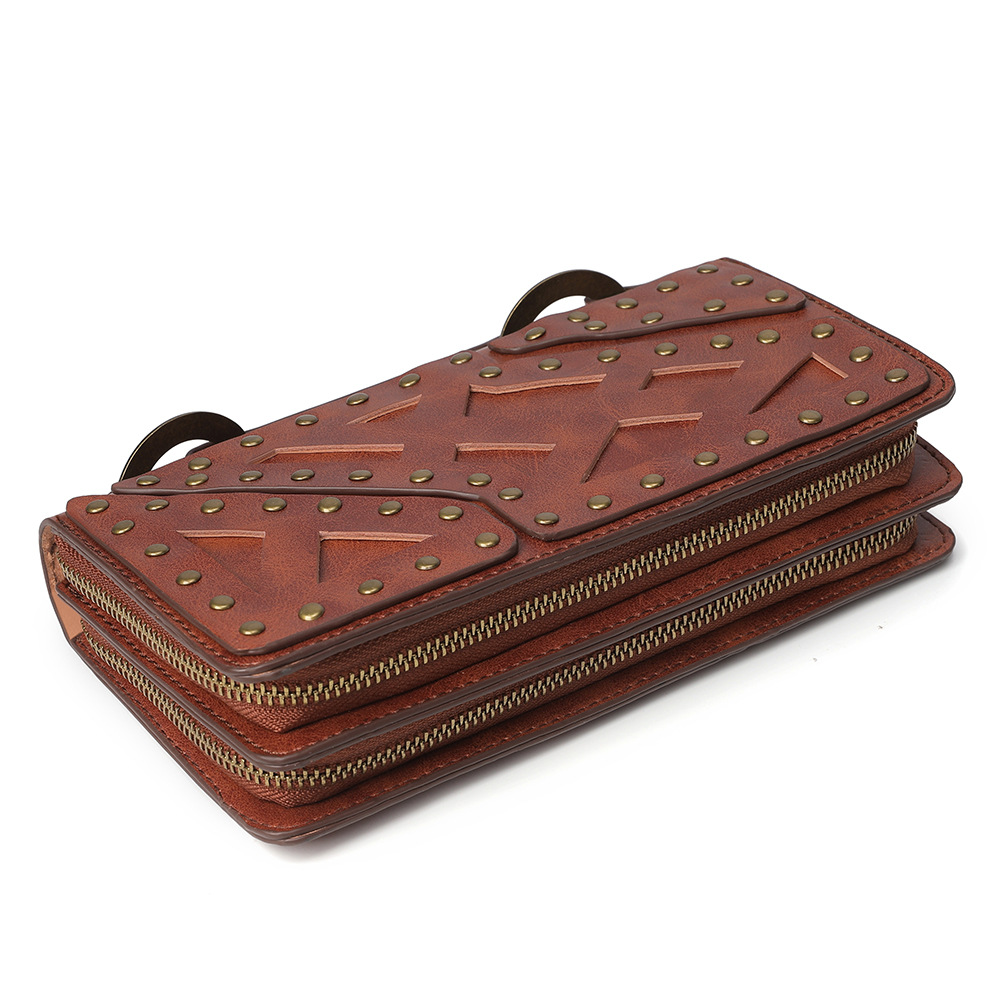 2024パンク風長財布PU両層クラッチバッグ大容量復古百掛けメンズレディース兼用 長財布