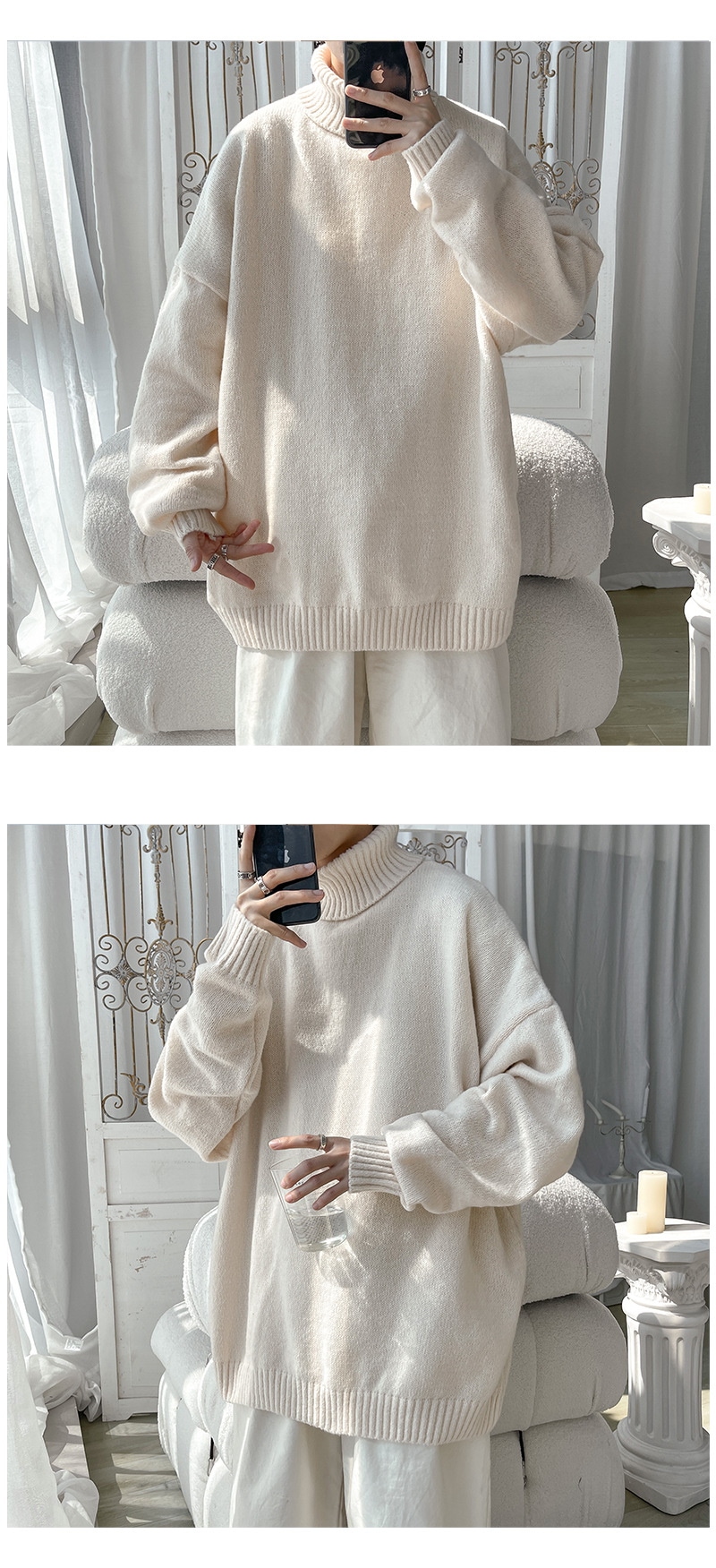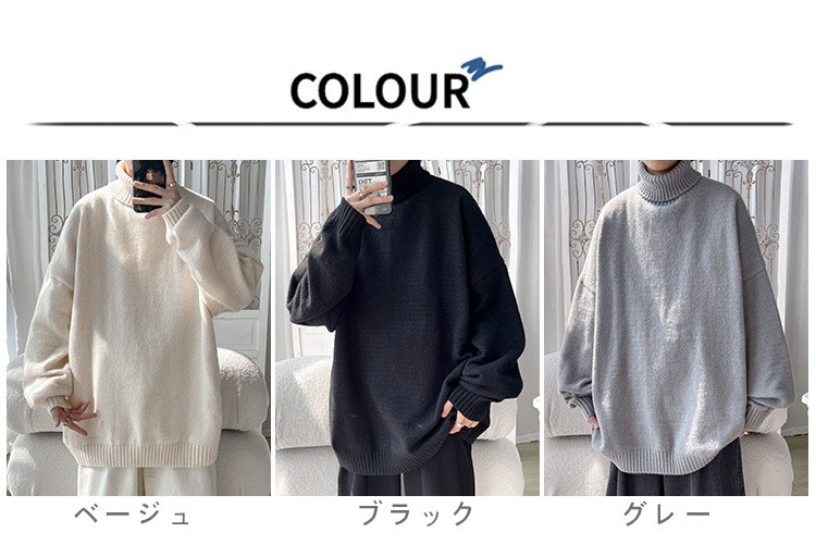 無地 ニット セーター メンズ 高級感 トップス タートルネック ブラウス 韓国ファッション メンズファッション ニット セーター