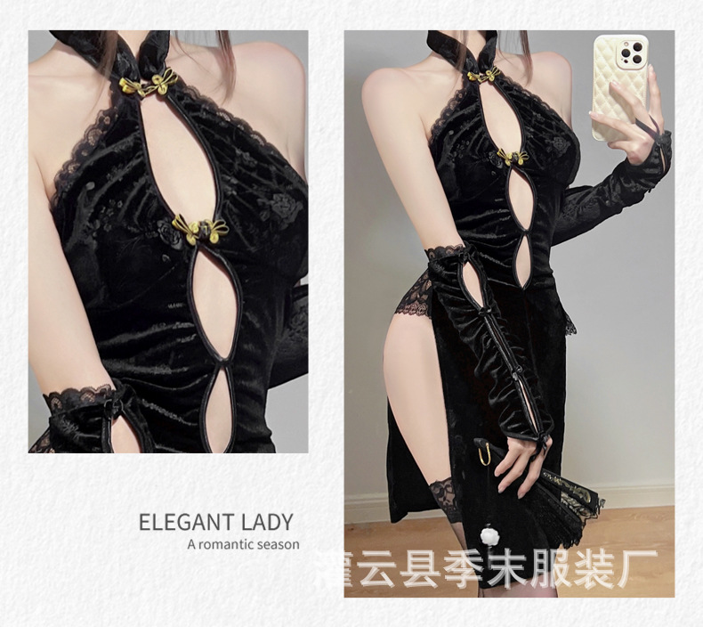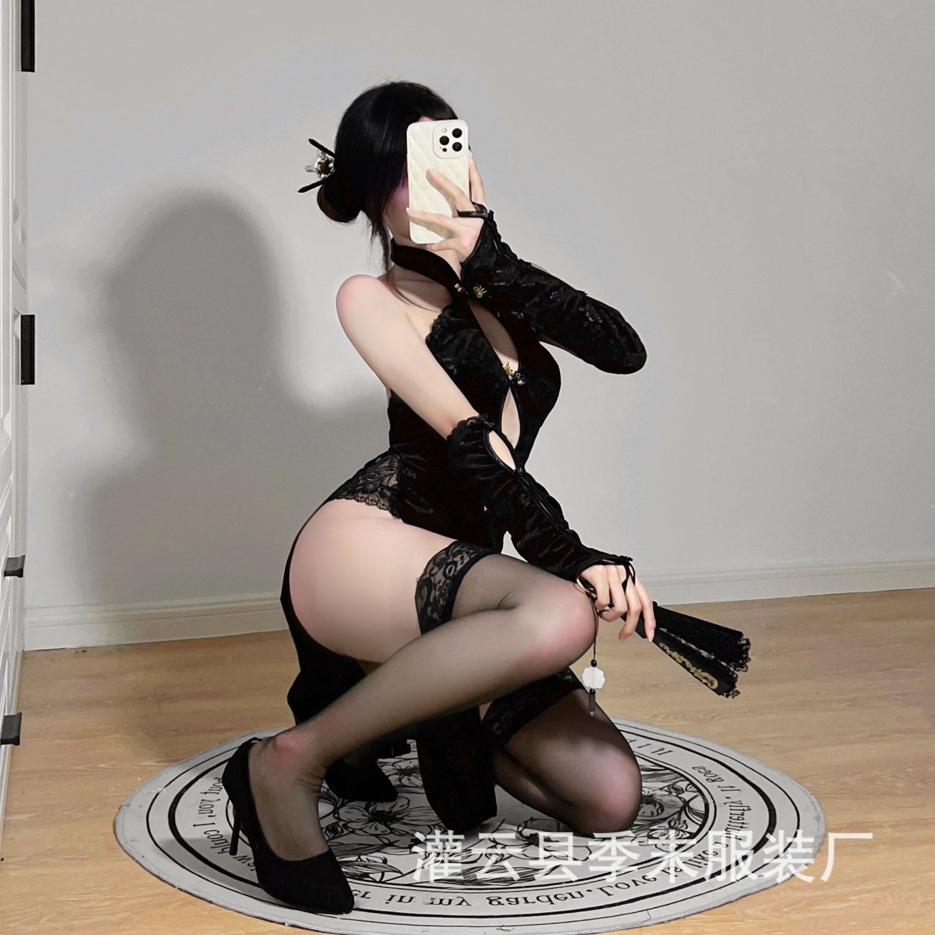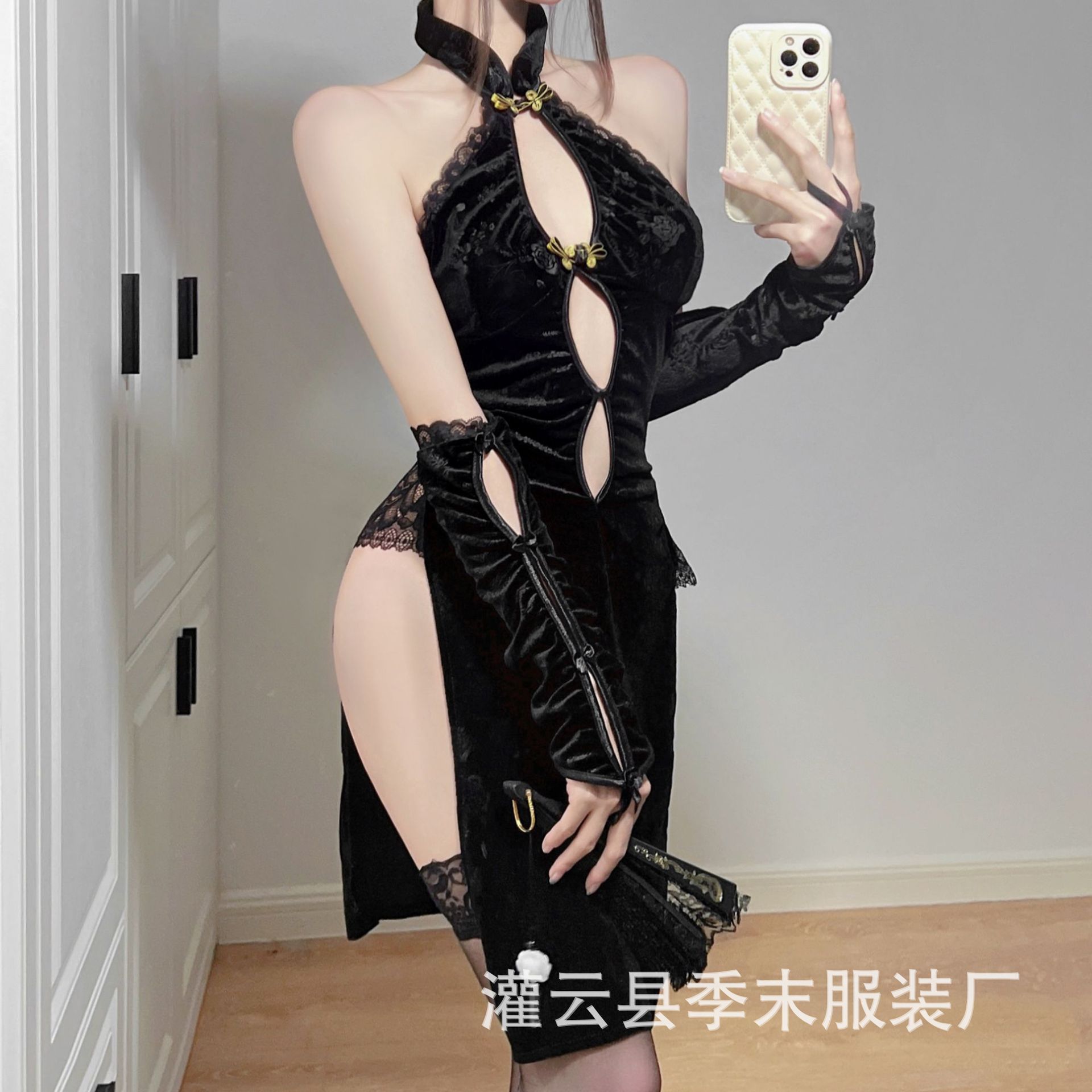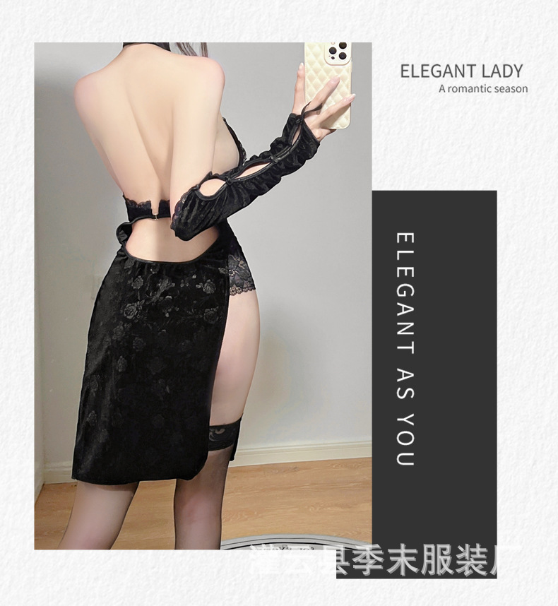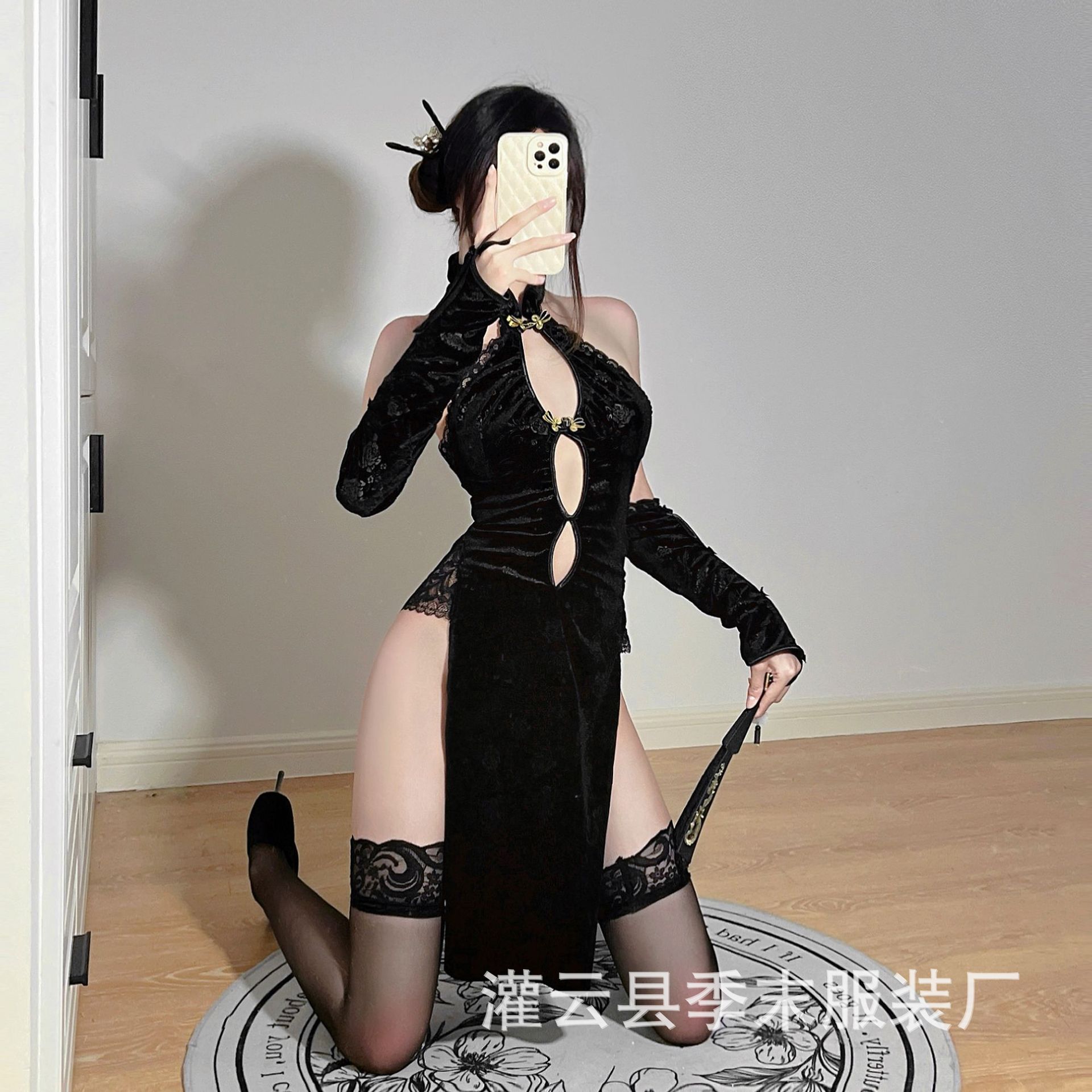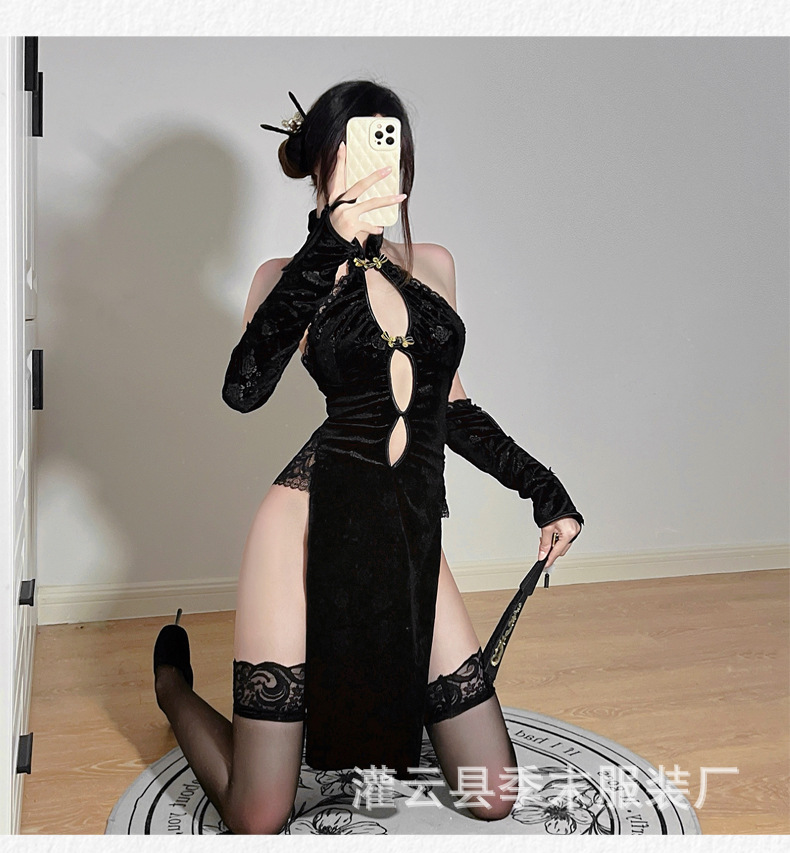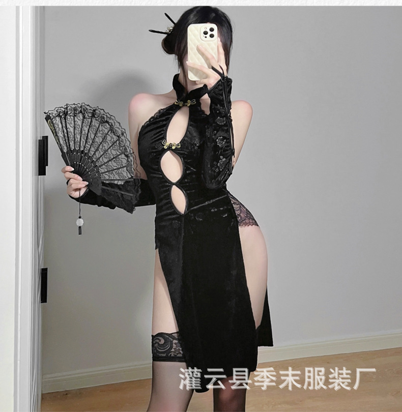 ランジェリー クラシカルな深Vスプリットチョンサムパジャマセット コスチューム