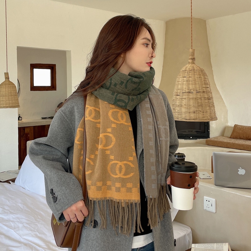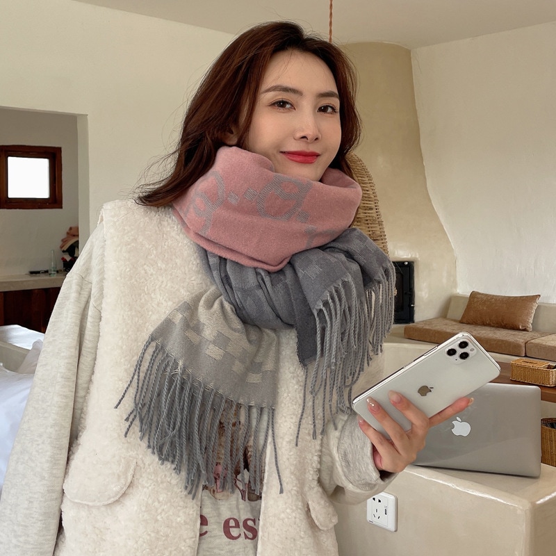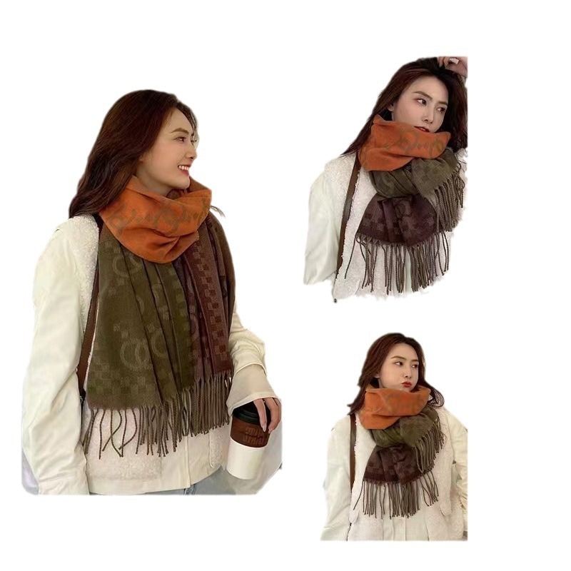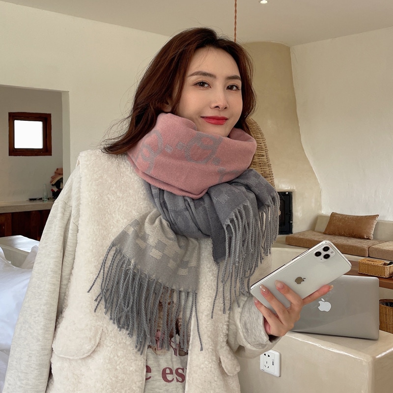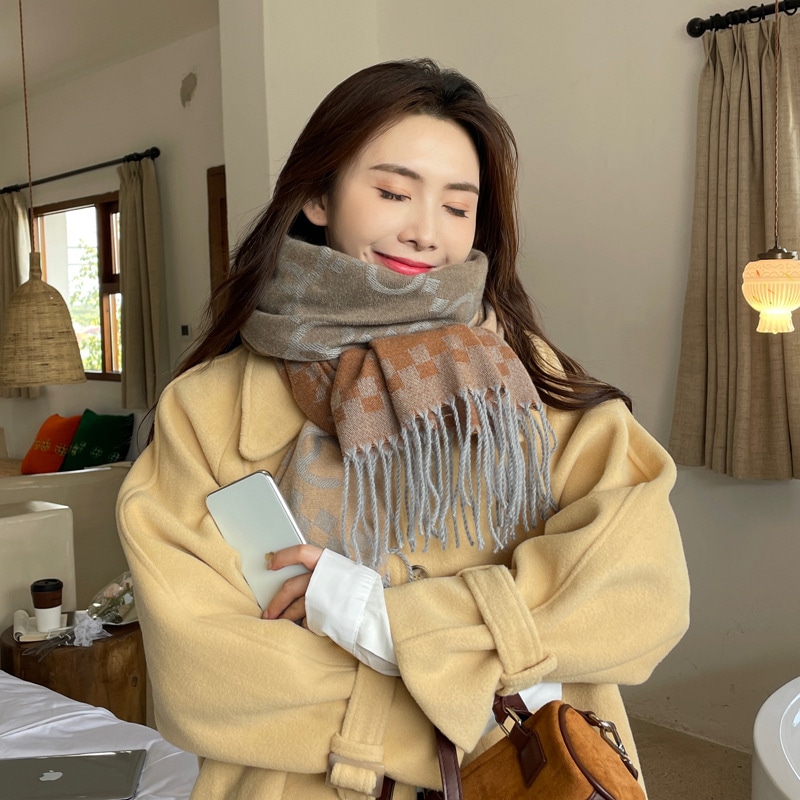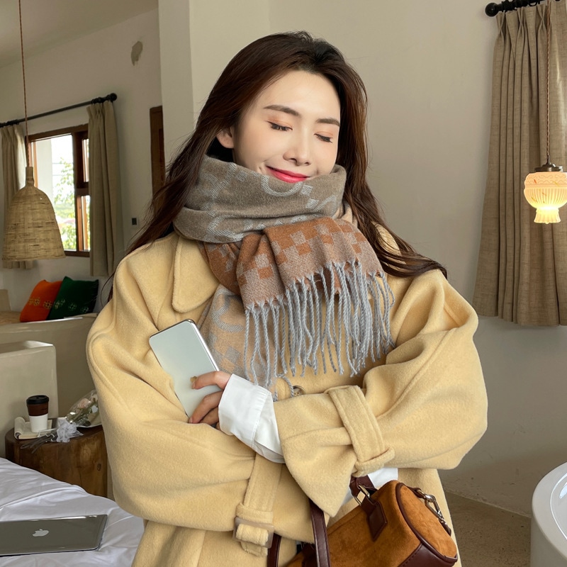 デイリーマフラー 新しい格子縞のカシミヤのマフラー女性模造ウール野生の両面秋と冬厚く暖かいマフラーショール マフラー