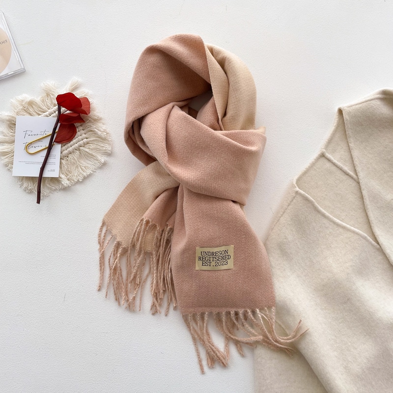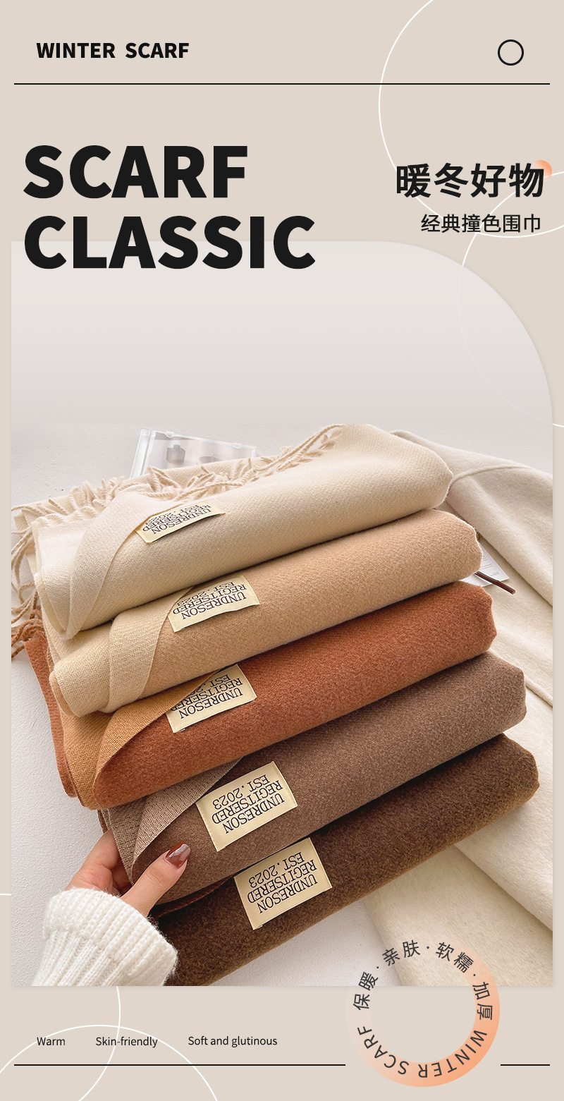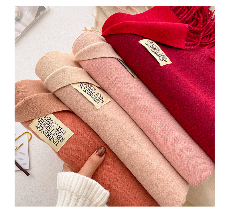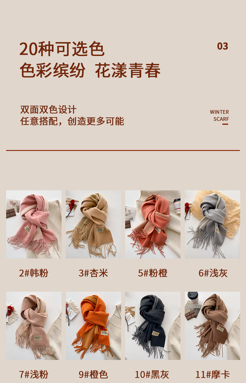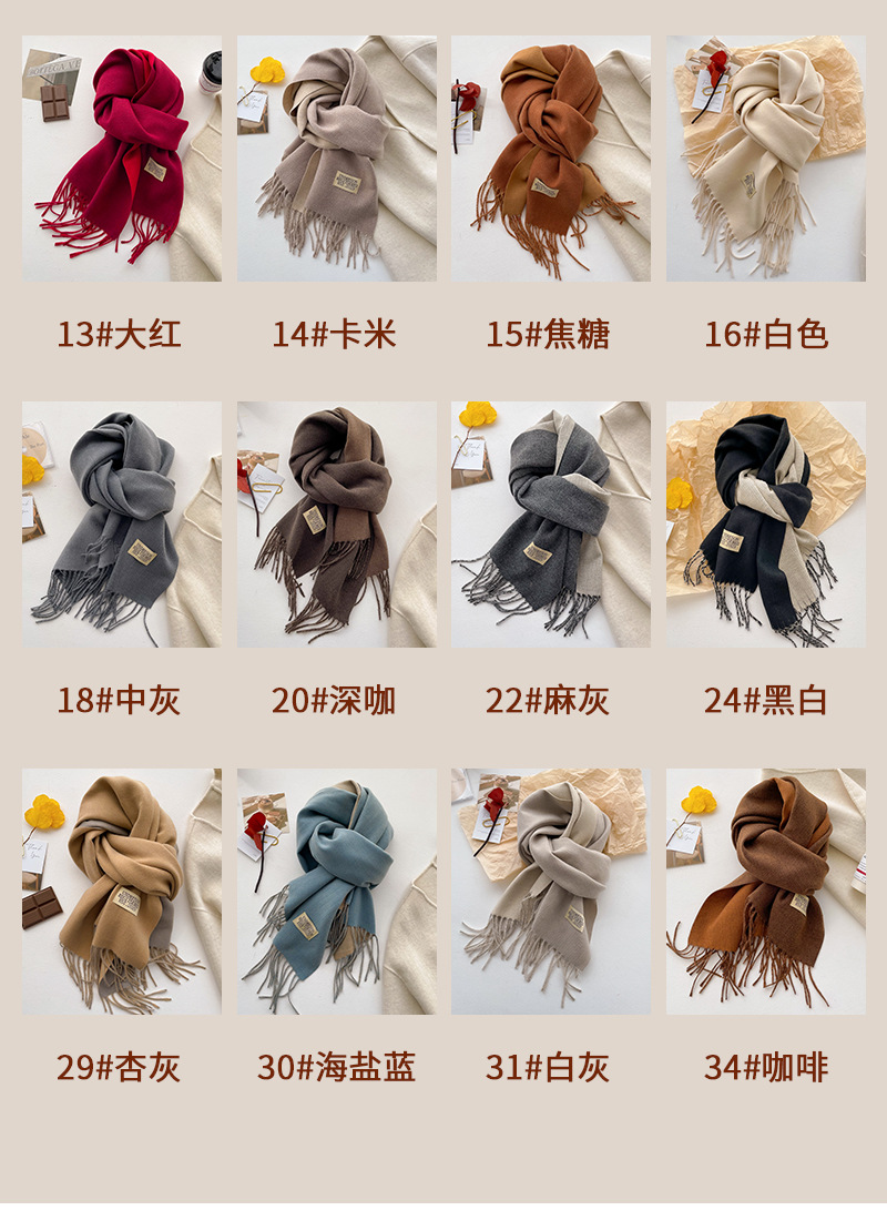 デイリーマフラー 新しい両面ソリッドカラースカーフ女性秋と冬はイミテーションカシミヤマフラー優しい風日本のタッセルショールを厚くした マフラー