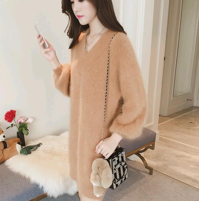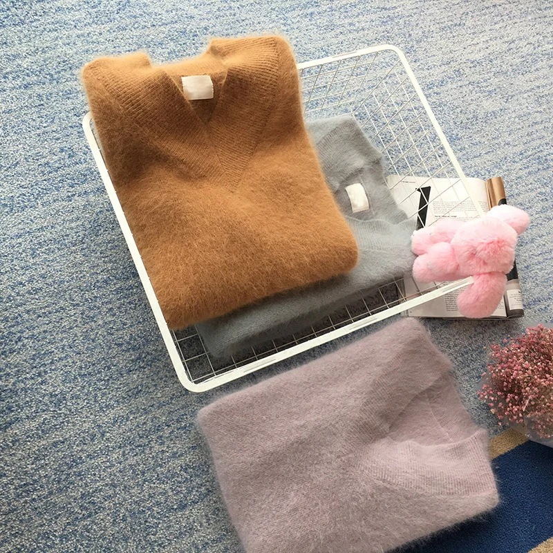 人気なリブニット ベーシックニット 秋冬新作 セーター レディース 無地百掛け 柔らかくてもちもちするミンク セミロング 長袖トップス Vネック着痩せ 気質ニットカシミヤタッチ