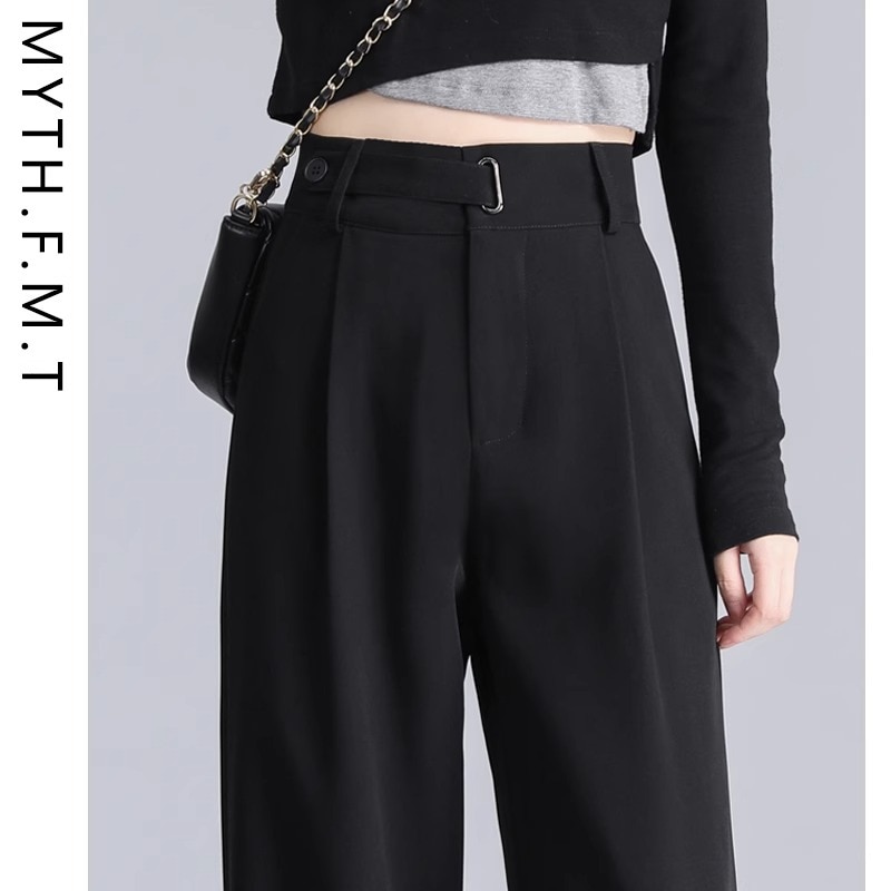 ハイウエスト 美脚 脚長 ストレートパンツ レディース ボタンストラップ ワイドパンツ 女性 ボトムス ワイド パンツ ハイウエストパンツ ズボン 長ズボン ロングパンツ