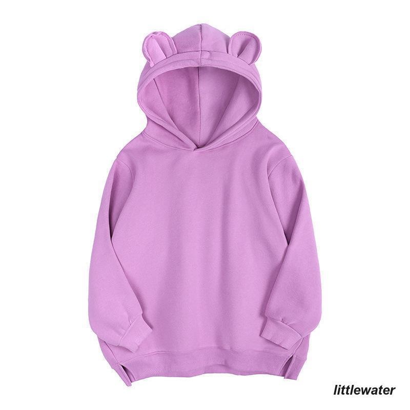 パーカー プルオーバー レディース トップス 長袖 裏起毛 フード付き 耳付き スリット シンプル 無地 かわいい カジュアル パーカー