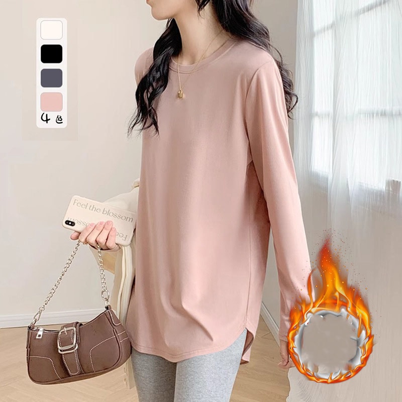 裏起毛 インナー カットソー 長袖 Tシャツ ロング丈 ロンT レディース 肌触り 微起毛 トップス ロングTシャツ ゆったり レイヤードトップス 大きいサイズ
