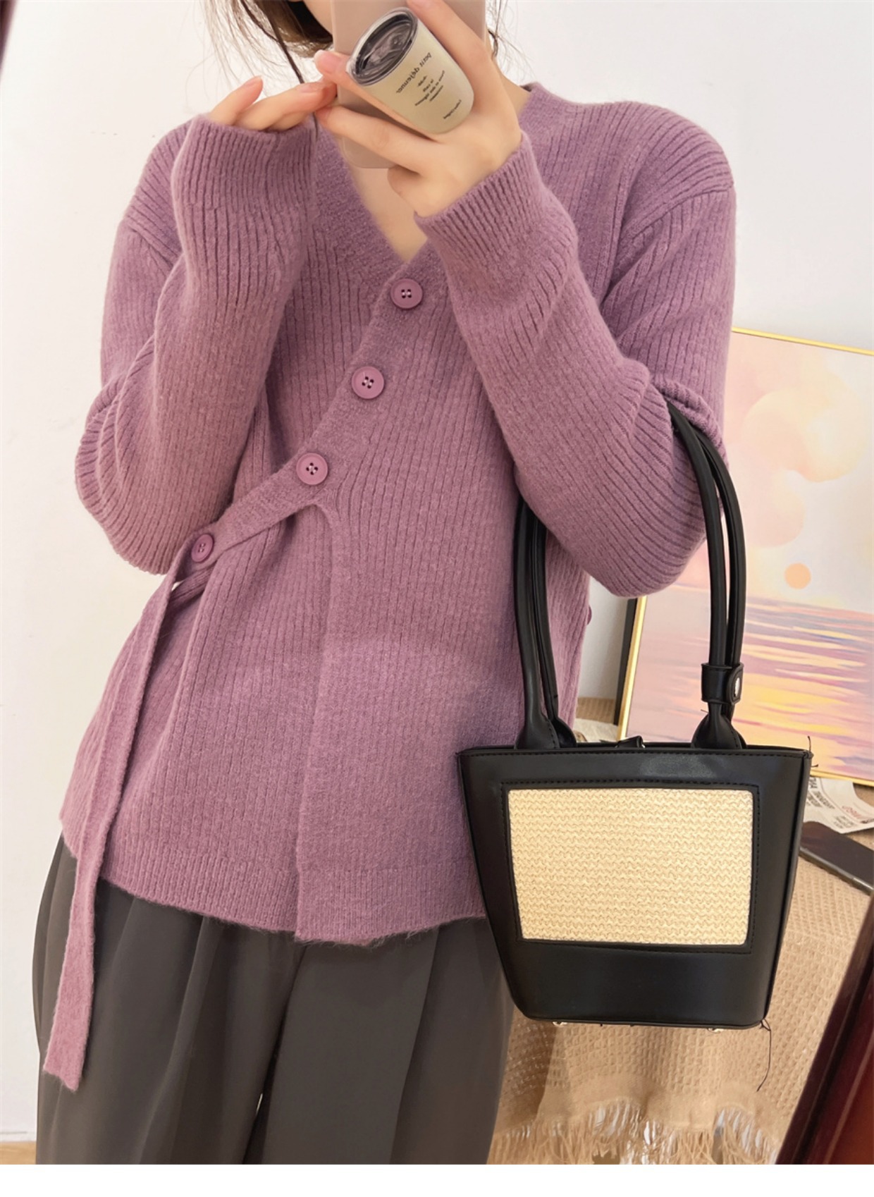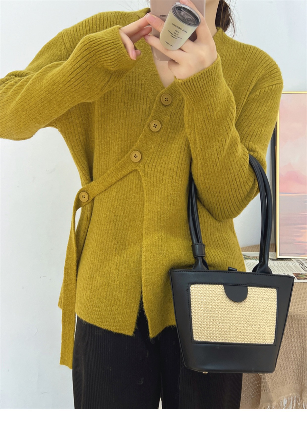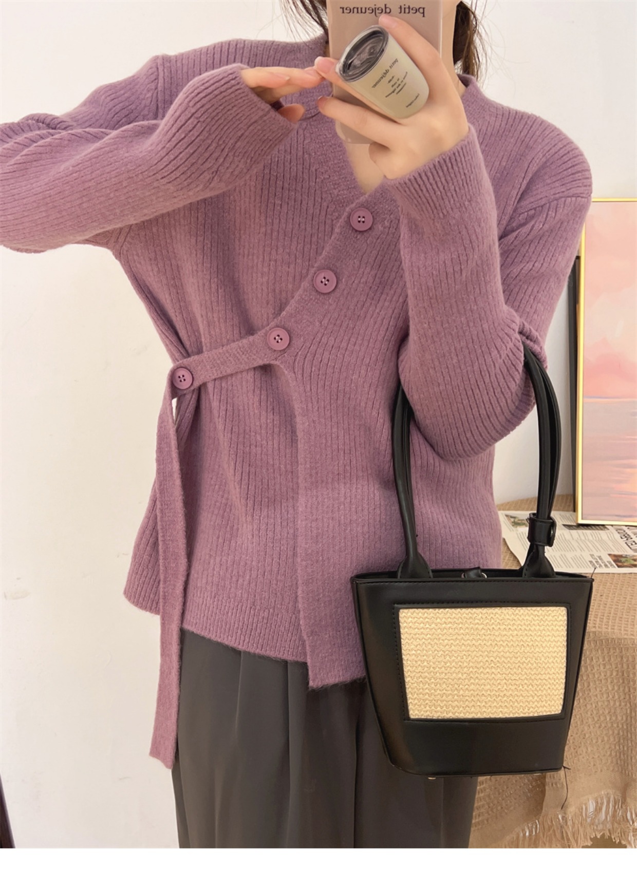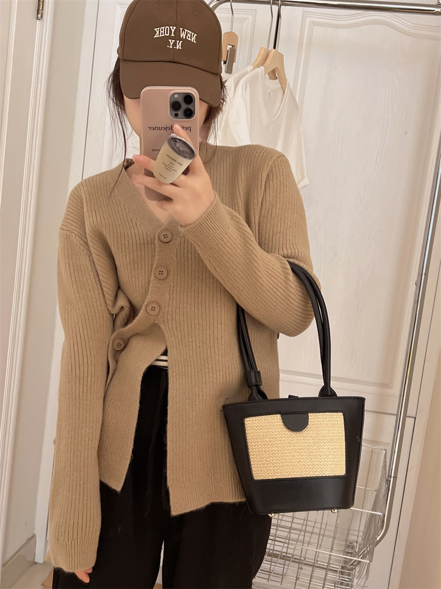 6colors 丸ネック新作秋冬厚手ニットセーター ゆったりニット長袖トップストップスラウンドネックニットカシミヤタッチ トップス ニット