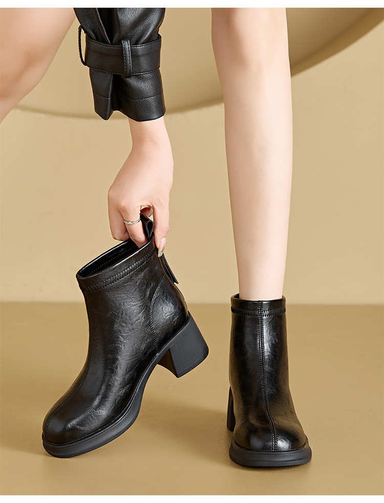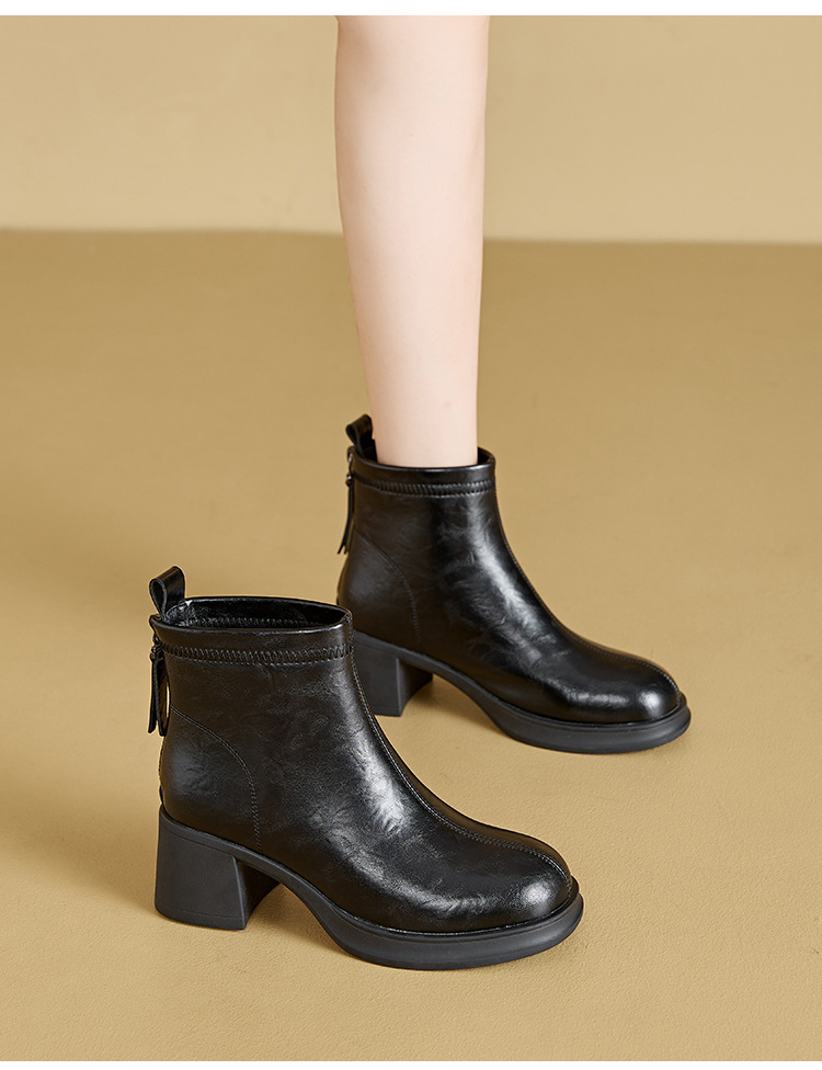ロングブーツ 秋冬の新作厚底本革韓国版バックジッパー本革マーチンブーツ女性 厚底シューズ ショートブーツ レディース ブーティー マーディンブーツ