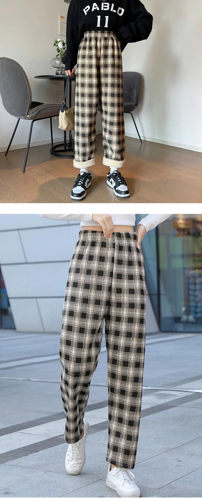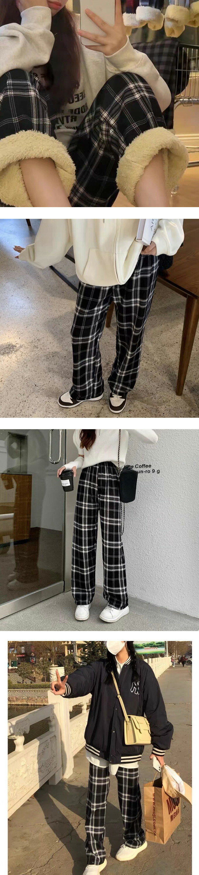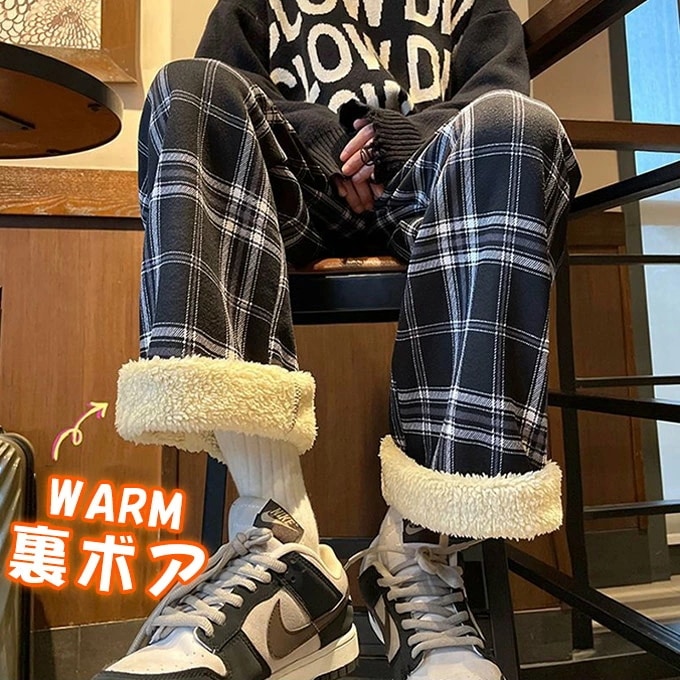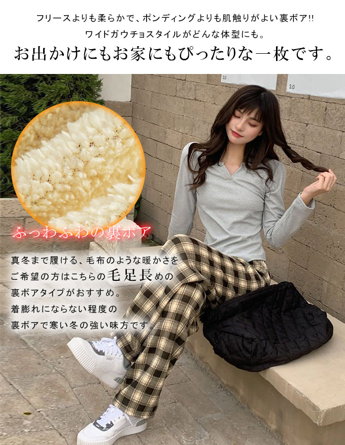 裏起毛チェック柄ワイドパンツ レディース 裏起毛 もこもこ 温か 防寒 チェック柄 ワイドパンツ カジュアルパンツ デイリー