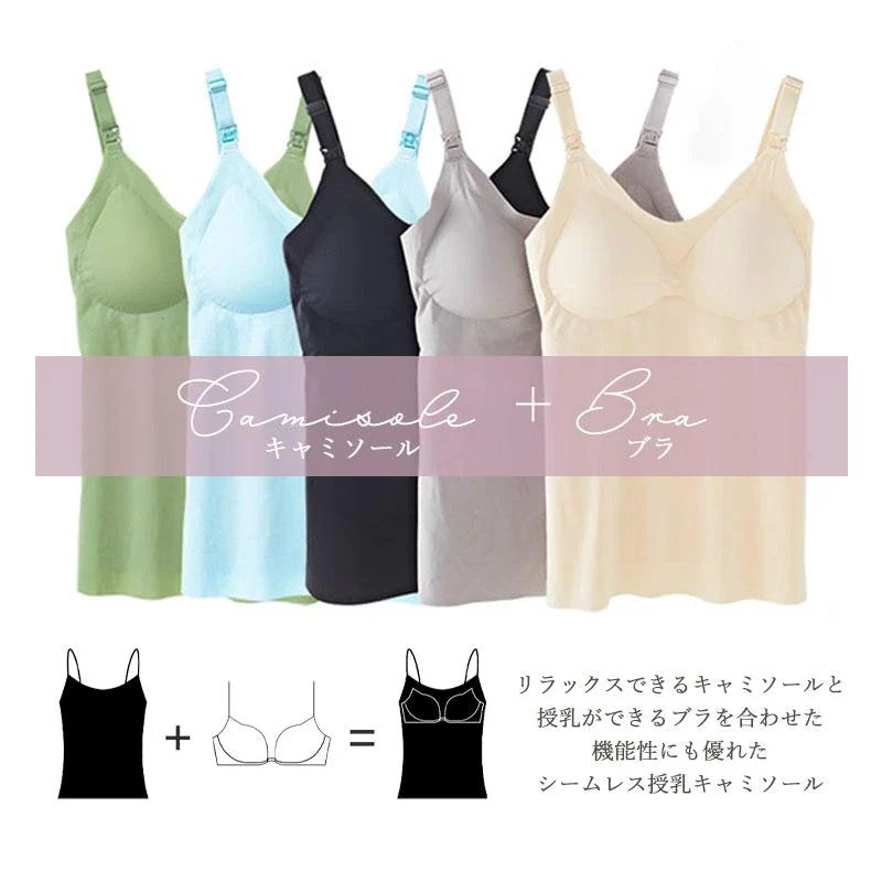 授乳キャミソール 授乳 キャミ マタニティ シームレス キャミソール カップ付き ワンタッチ 授乳ブラタンクトップ ブラトップ インナー シンプル