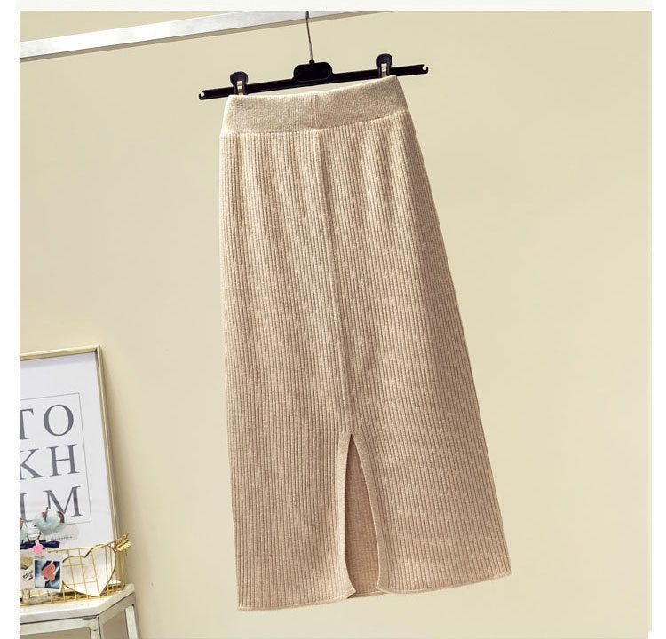 ニット フレアスカート 大人気 スカート スカート 小柄 大きめ 秋冬 厚手 裏起毛 レディース ハイウエストスリット ストレートスカート ロングタイトスカート 韓国ファッション 気質 着やせ