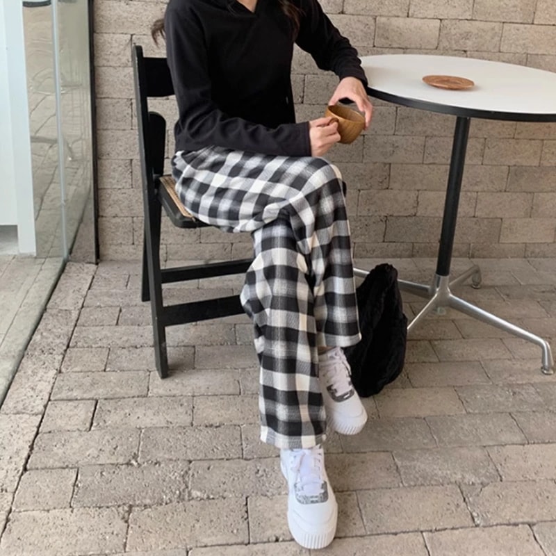 裏起毛 チェック柄パンツ ワイドパンツ チェック パンツ 裏ボア 暖かい レディース ウエストゴム チェックパンツ チェック柄 裏起毛パンツ イージーパンツ