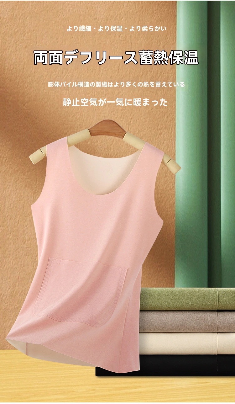 裏起毛 タンクトップ あったか インナー レディース 腹巻き ポケット付き 冷え対策 暖かい 防寒 秋冬 下着 肌着 ストレッチ キャミソール