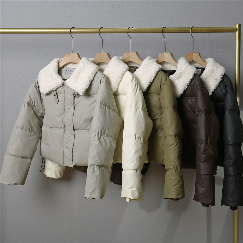 2024秋冬 ダウンジャケット レディース アウター 無地 気質 カシミヤタッチ ファーカラー ライトダウン ショート 軽量 ジップアップ アウター 韓国ファッション レディース