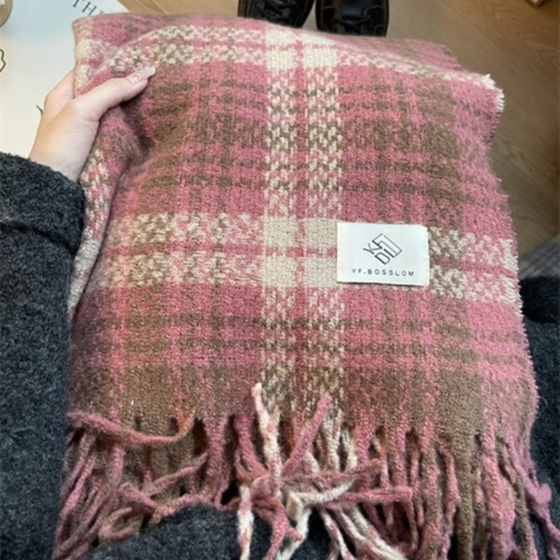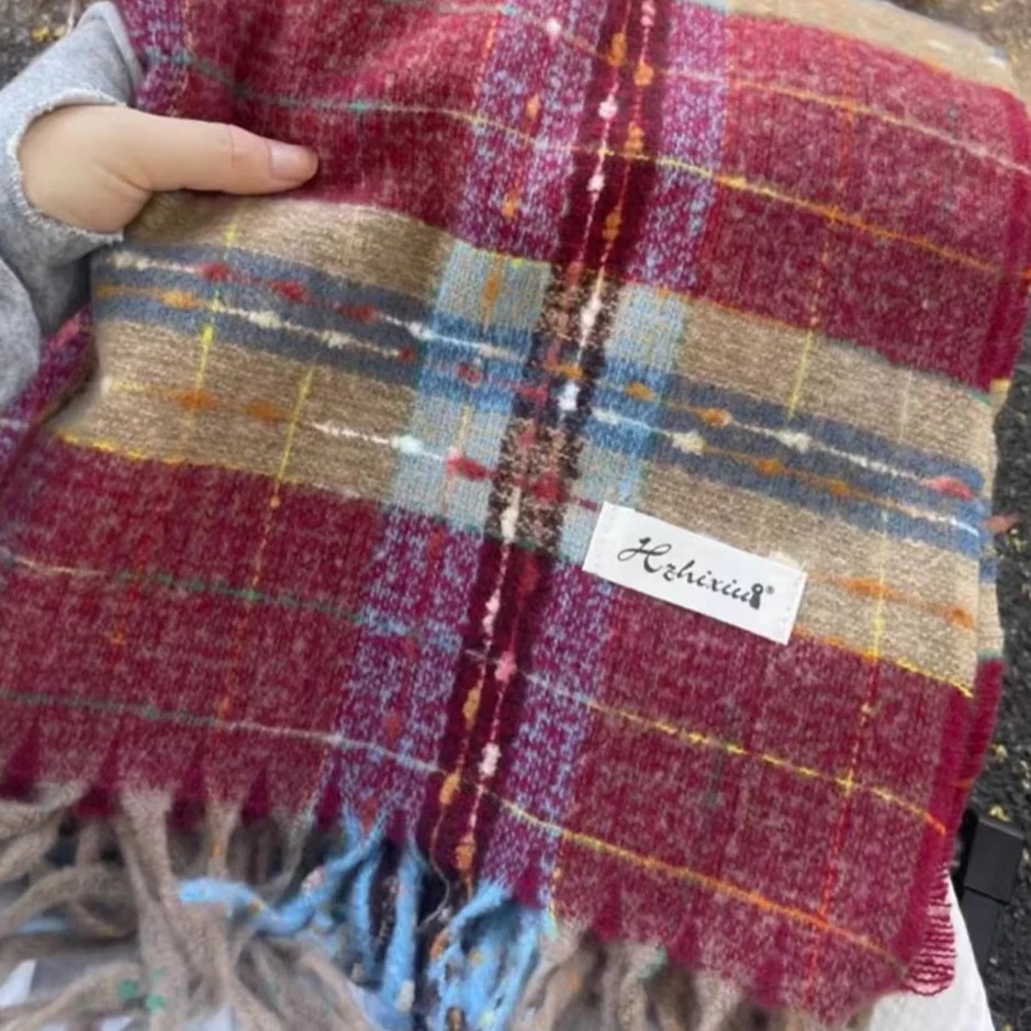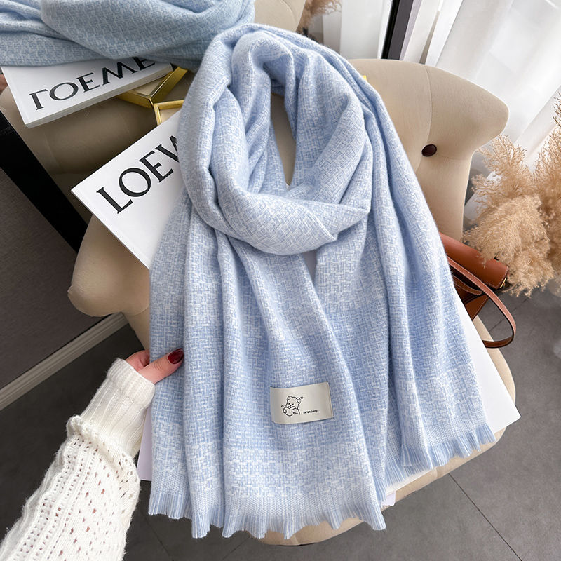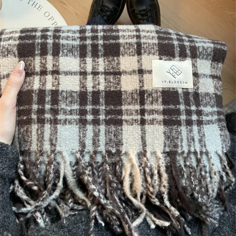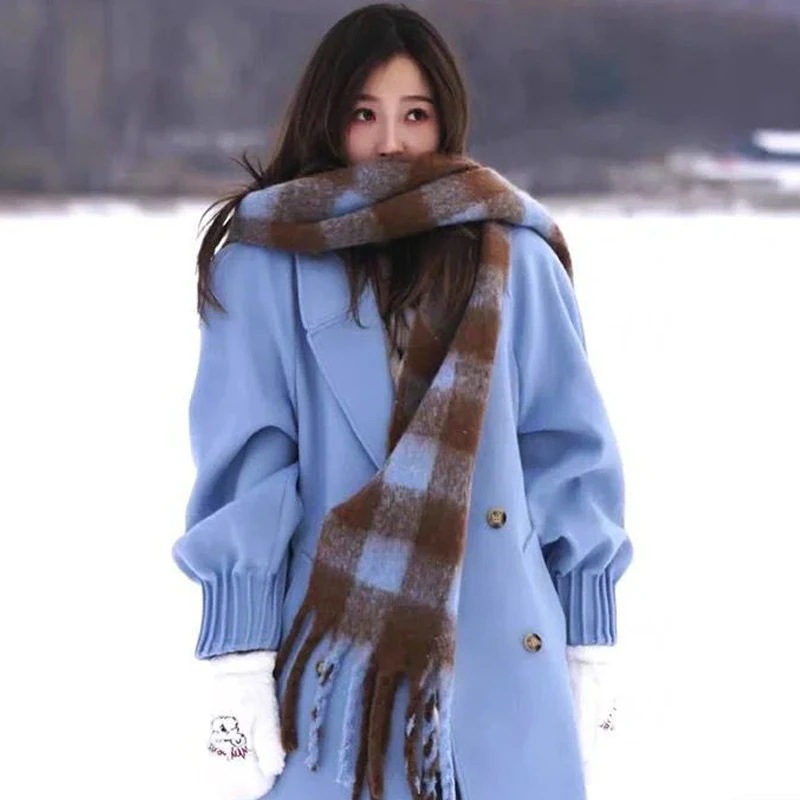 デイリーマフラーブルー マフラー 女性 秋冬 厚手 暖かい カシミア チェック柄 雰囲気 マフラー コリアン ソフト フリンジ ショール 韓国ファッション