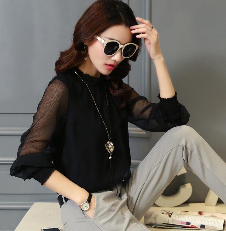 シフォンブラウス シアーブラウス ボリューム袖