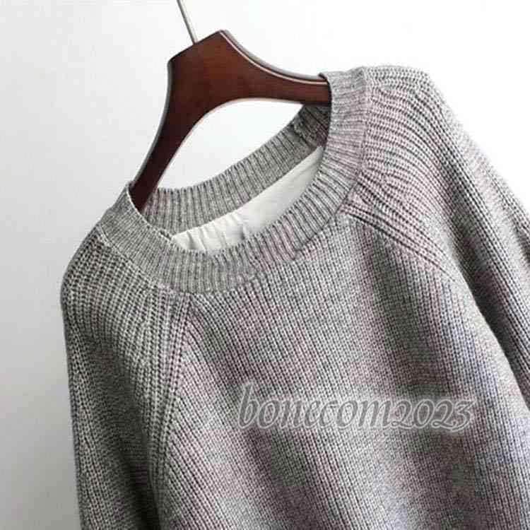ゆったり セーター ニット ふんわり プルオーバ ブラウス バルーンスリーブ レディース クルーネック 長袖 ニットドッキング バルーン袖 レイヤード風 重ね着風