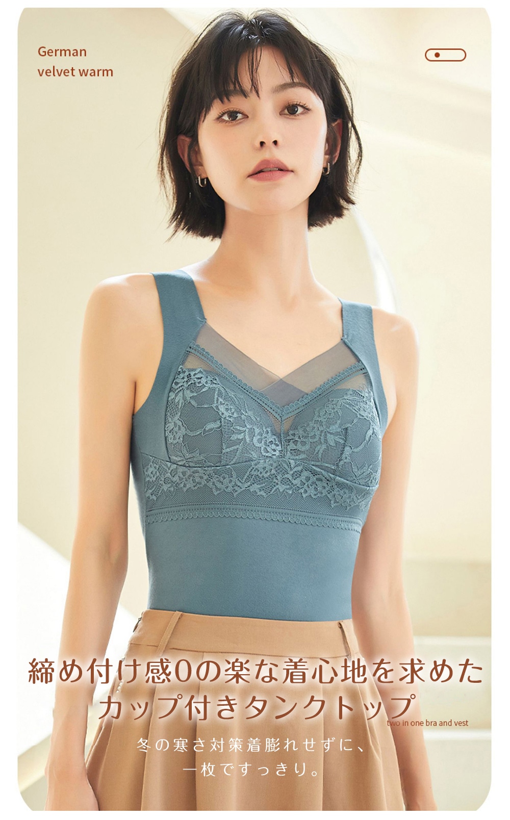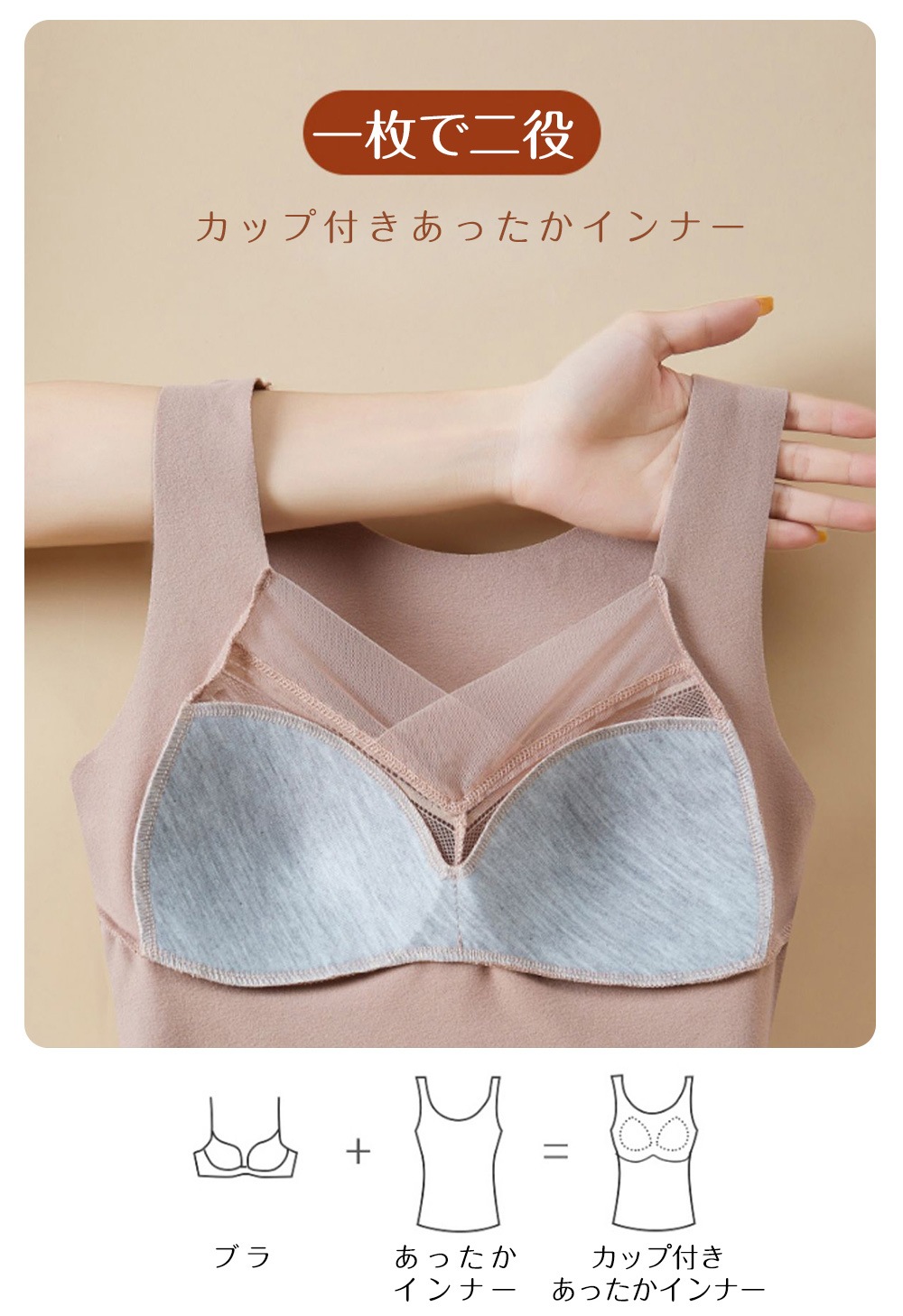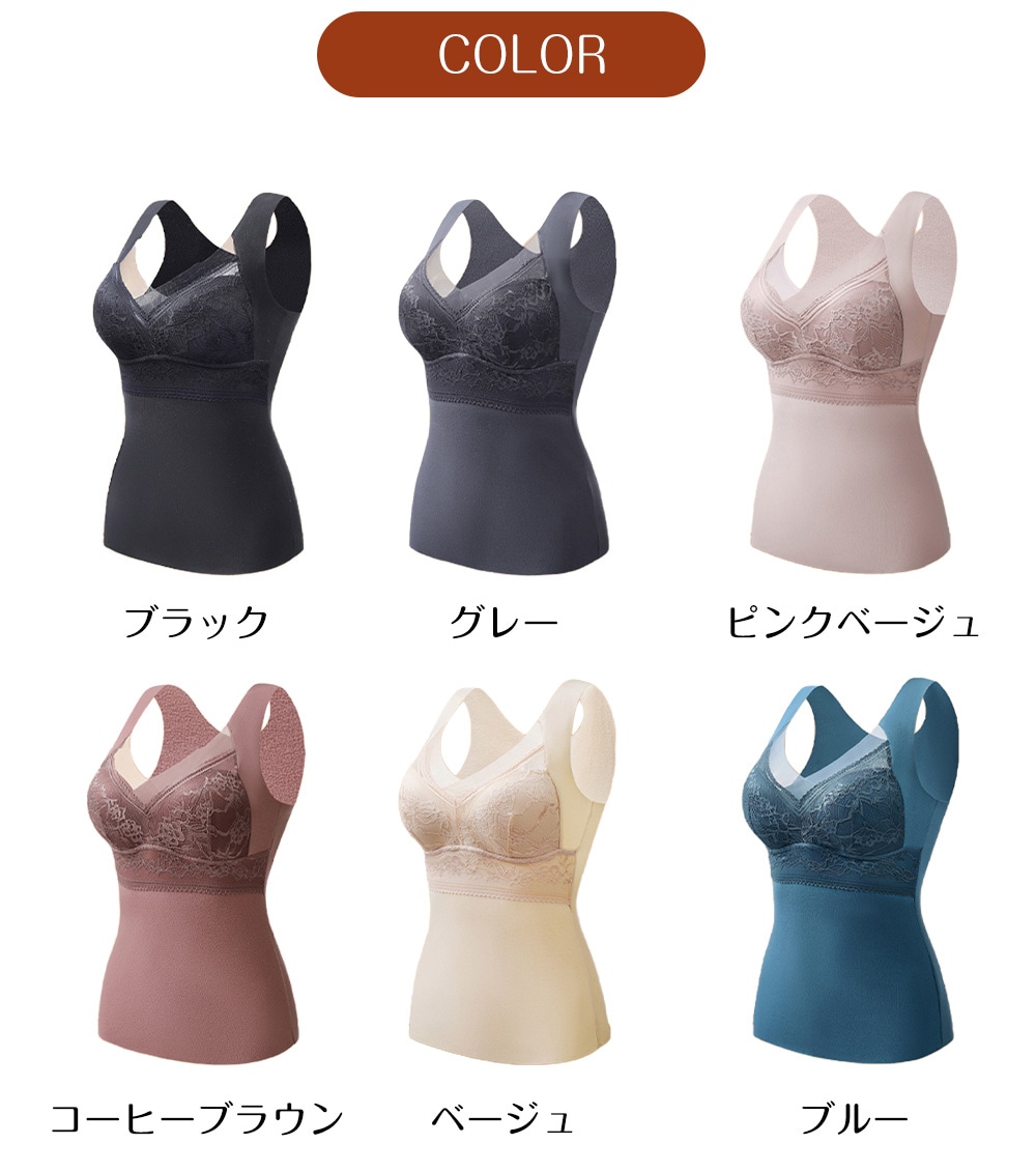 カップ付き 裏起毛 インナータンクトップ 裏起毛タンクトップ インナー レディース トップス 暖か 防寒効果 矯正効果 ヒート レース 花柄 パット付 睡眠 ブラ カッ
