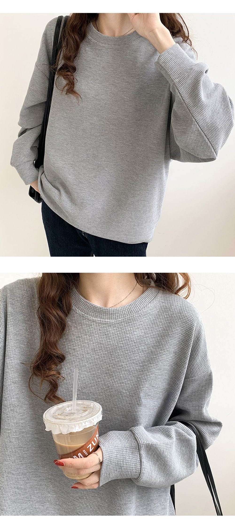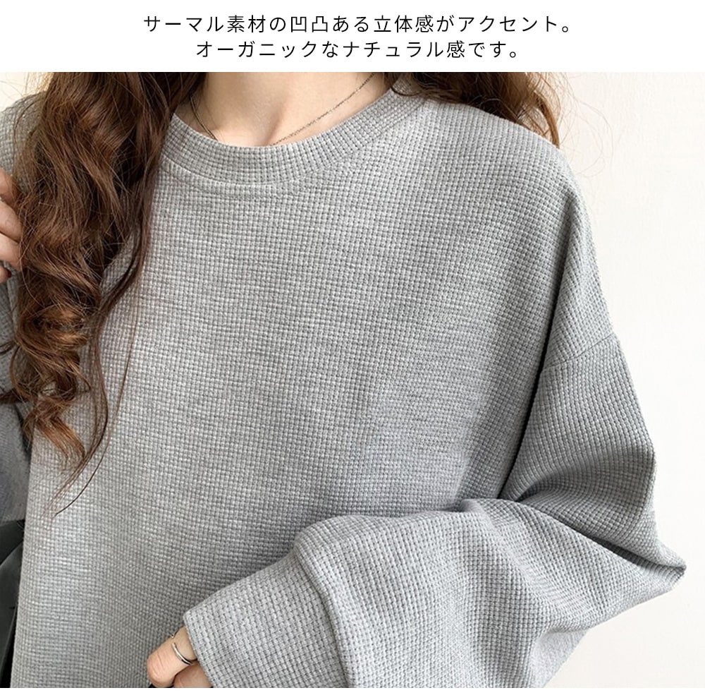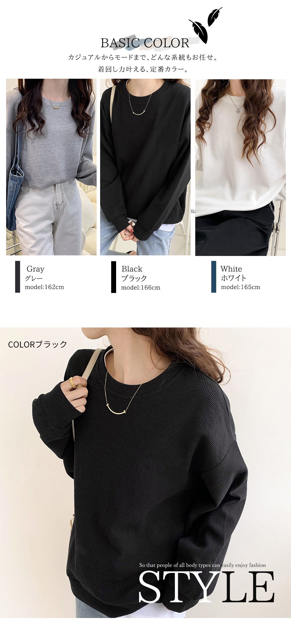 2枚同時買うと100円OFF ワッフル生地トップス長袖 メロウラウンドネック 長袖 メロウ フリル ボーダー ニット トップス カットソー ツートーン メロー おしゃれ 無地 かわいい シン