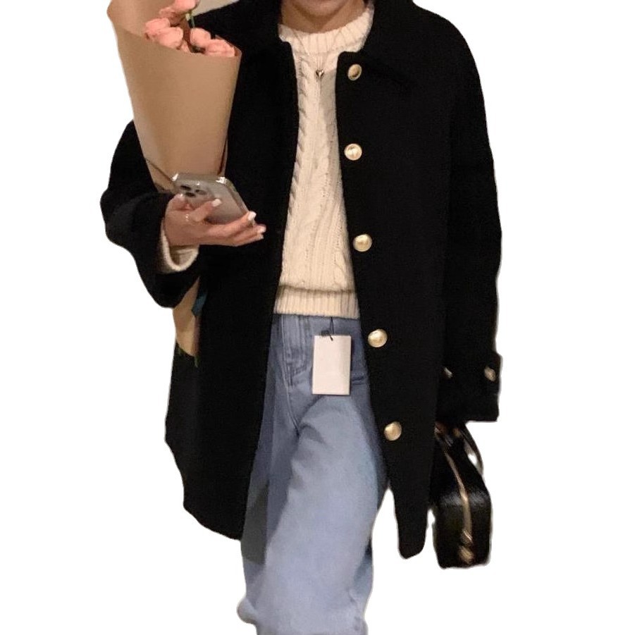 韓国ファッション レディース アウターラペルシングルブレストルーズツイードコートジャケット トレンチコート