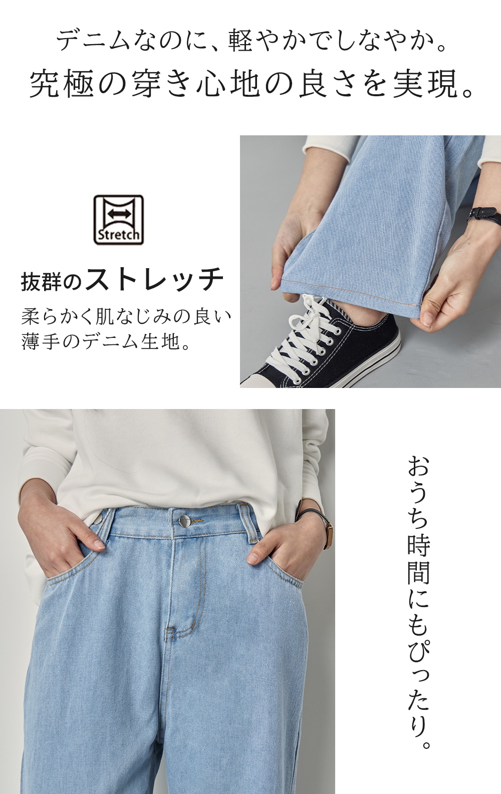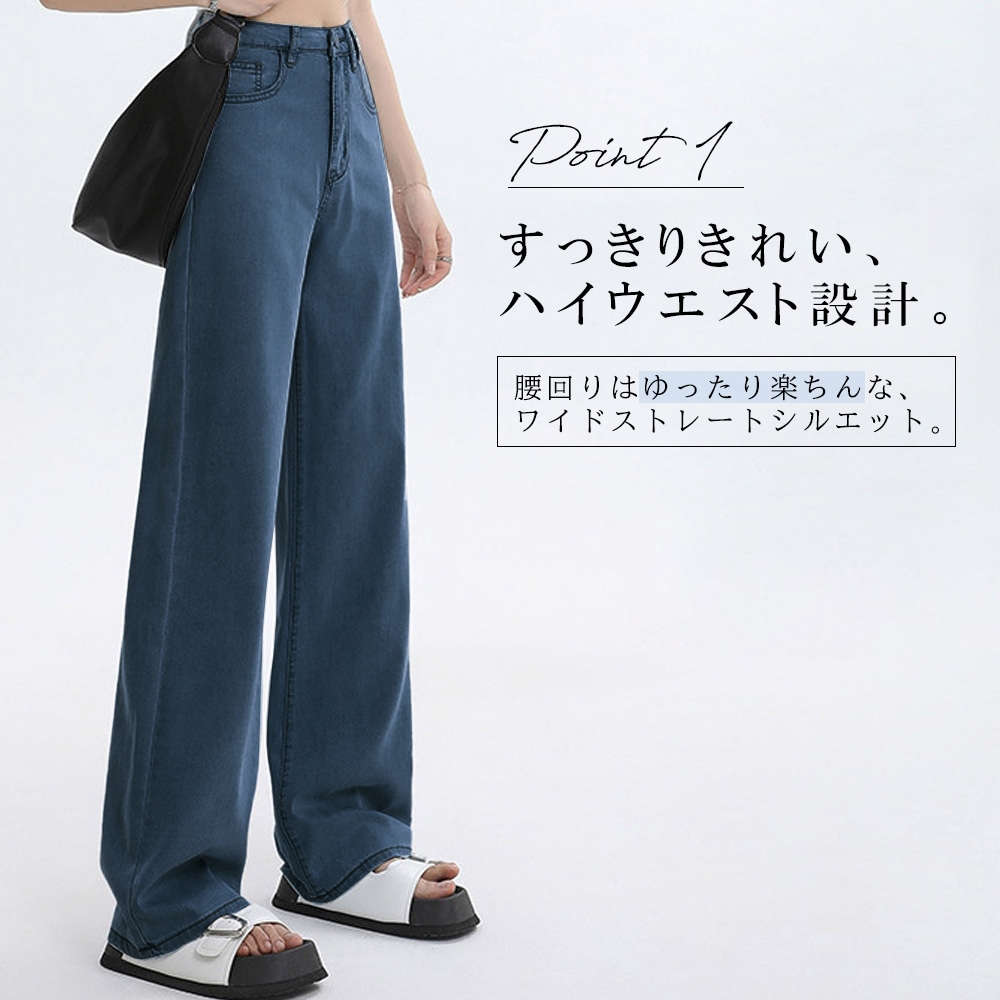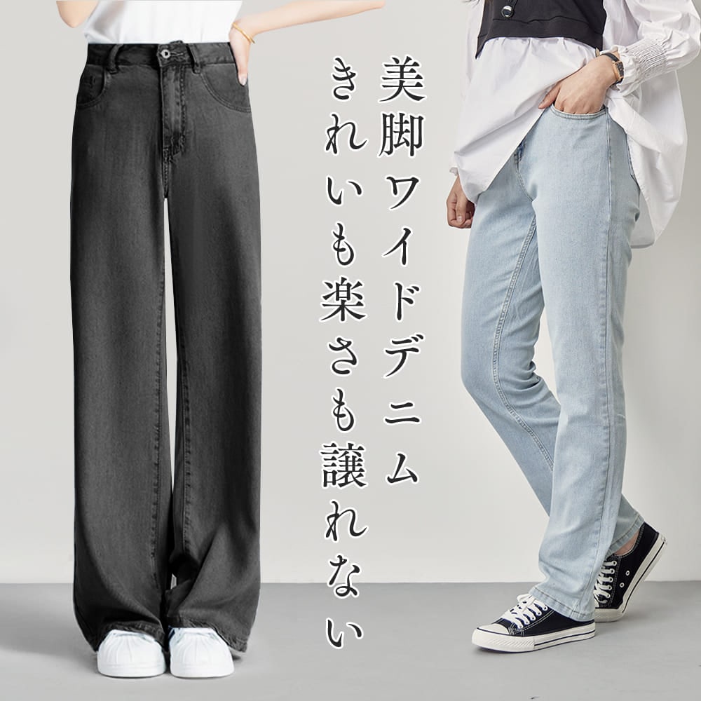 美脚に見えるストレートシルエット デニムパンツ テーパードパンツ ワイドジーンズ ジーパン リラックスパンツ 韓国ファッション レディース ストレッチ 着痩せ ボトムス カジュアル きれいめ 春 夏