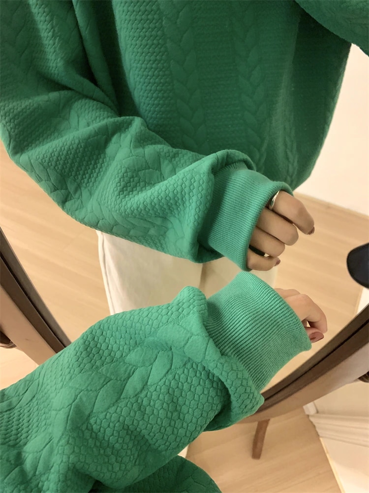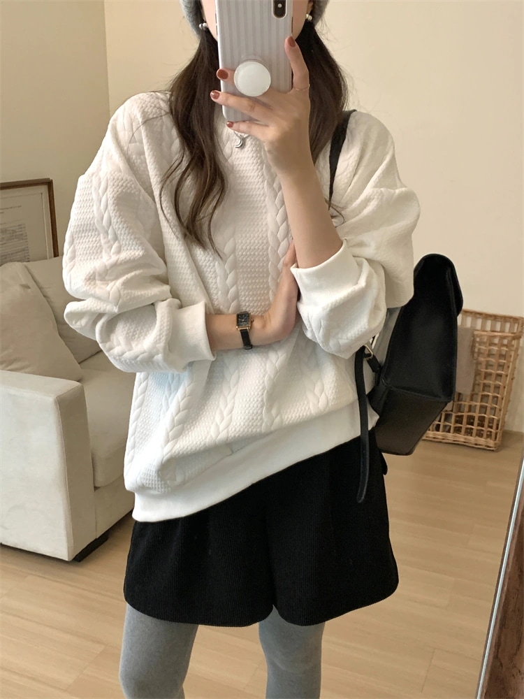 長袖スウェット 型押し エンボス加工 トップストレーナー スウェット 型押しプルオーバー 韓国ファッション トレーナー