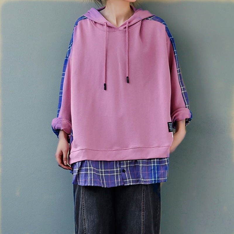 チェック 長袖 マウンテンパーカー トレーナーフード付き 大きめサイズ トップス アウター 百掛け 裏起毛 運動 スウエット パーカー ロンT 裏起毛ファッ