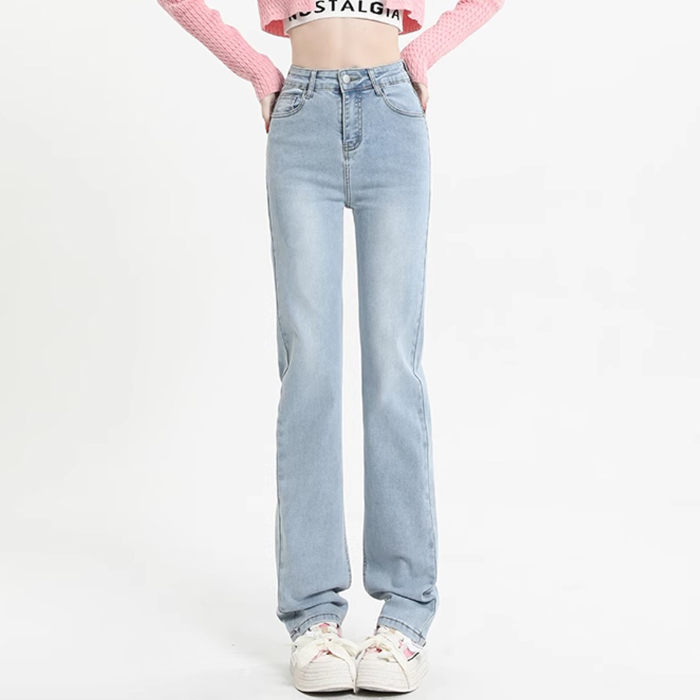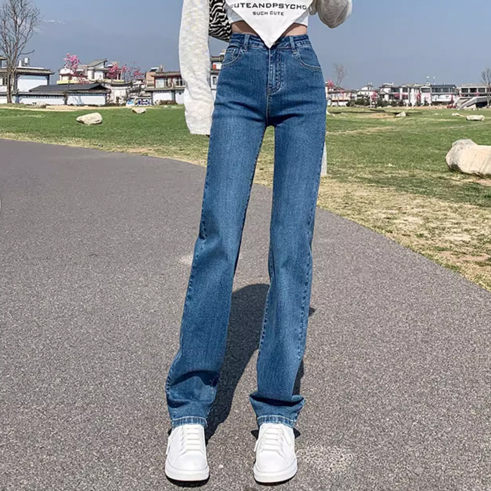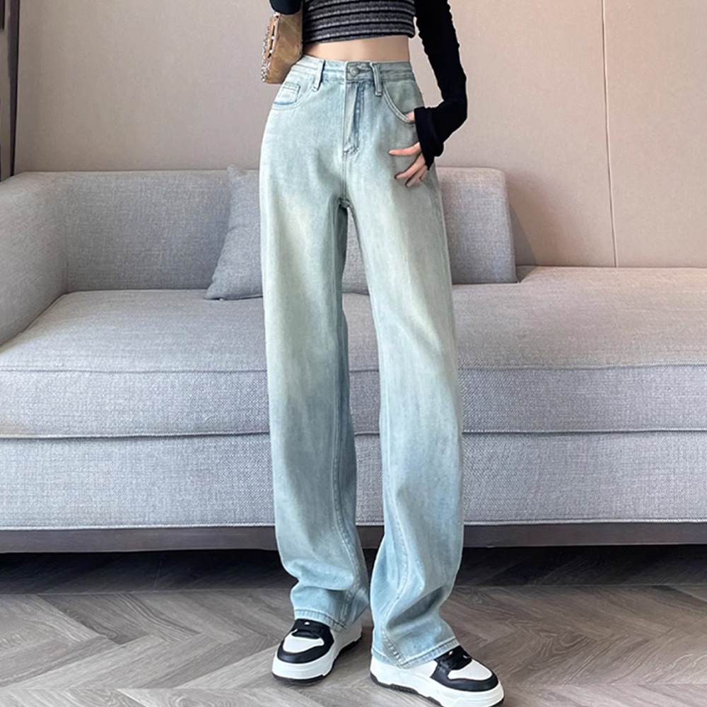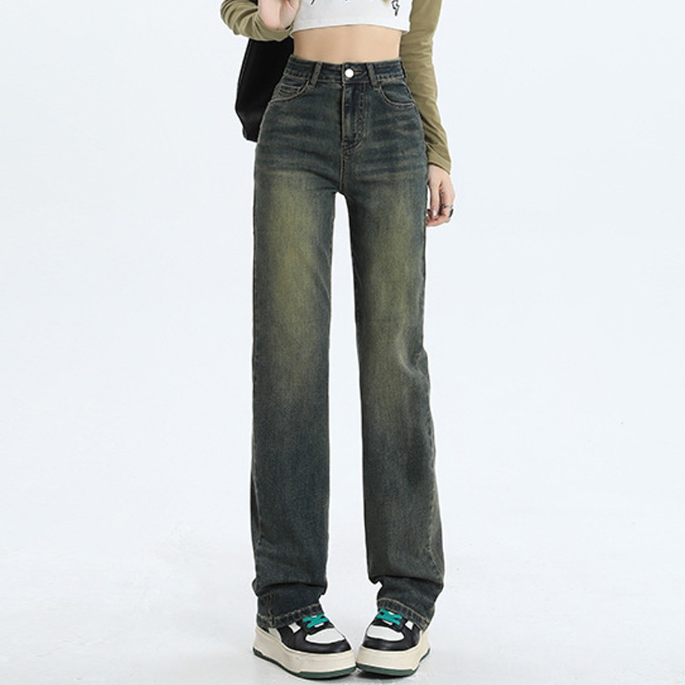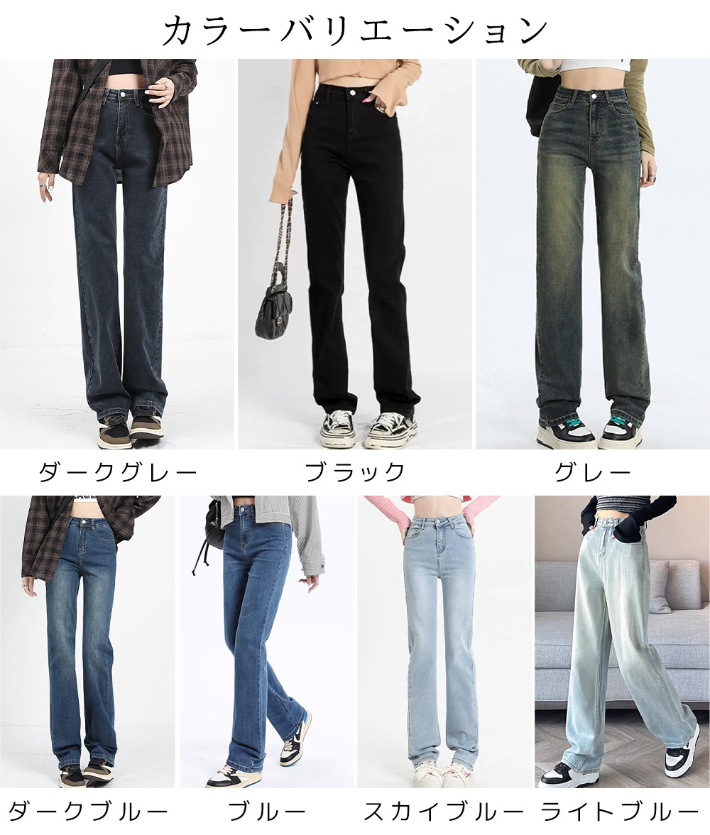 デニムパンツ ワイドレッグ デニム ジーンズ ストレートパンツ 伸縮性 ハイウエスト シック 韓国スタイル カジュアル ヴィンテージ ストリートウェア