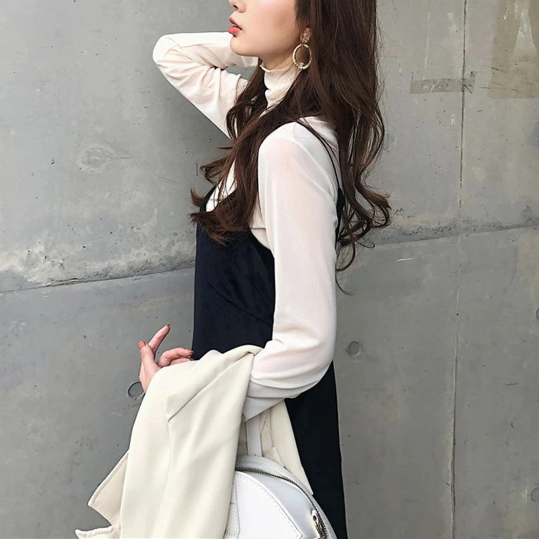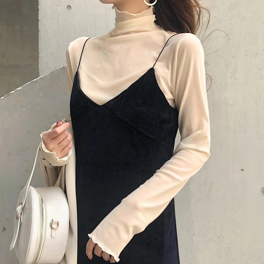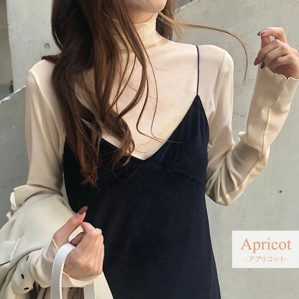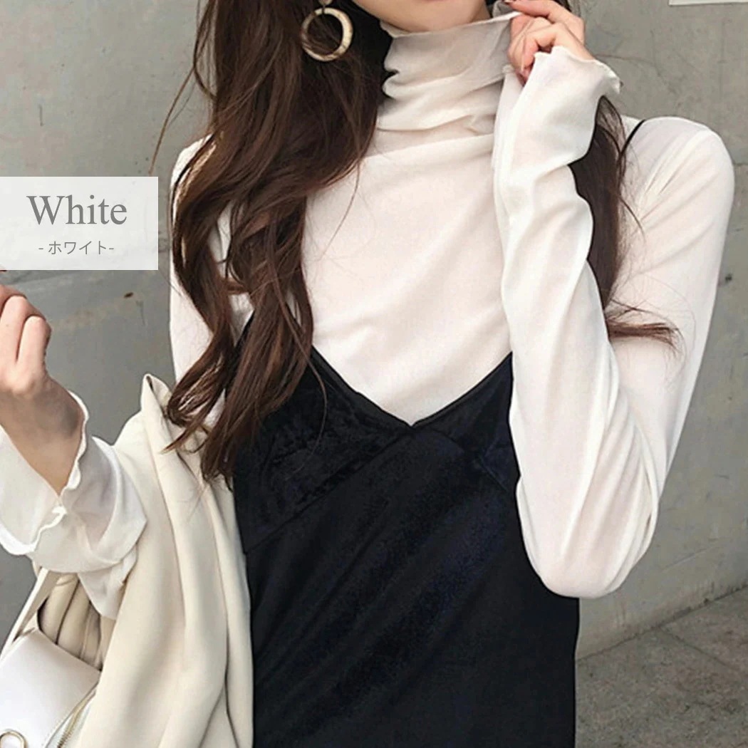 メローデザイン トップス 旬なトレンドハイネックインナーカットソー 薄手 無地 Tシャツ カットソー