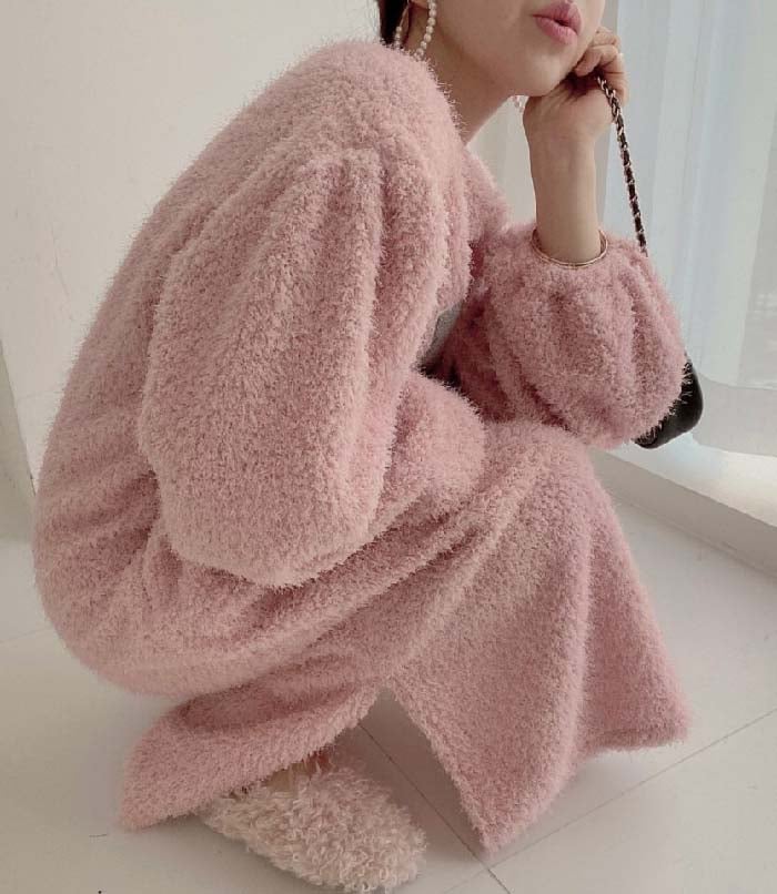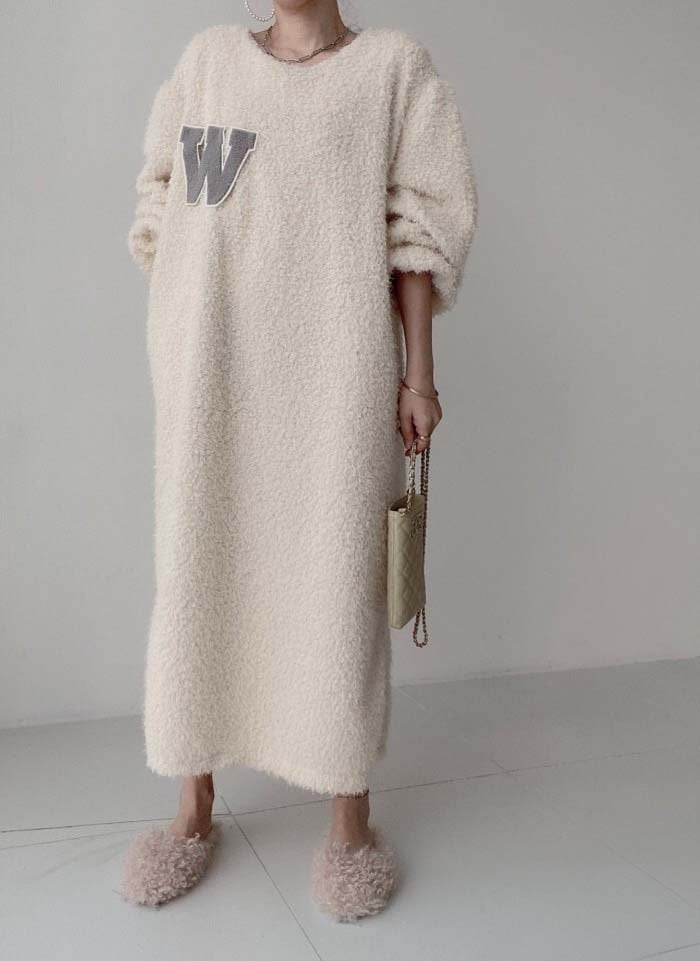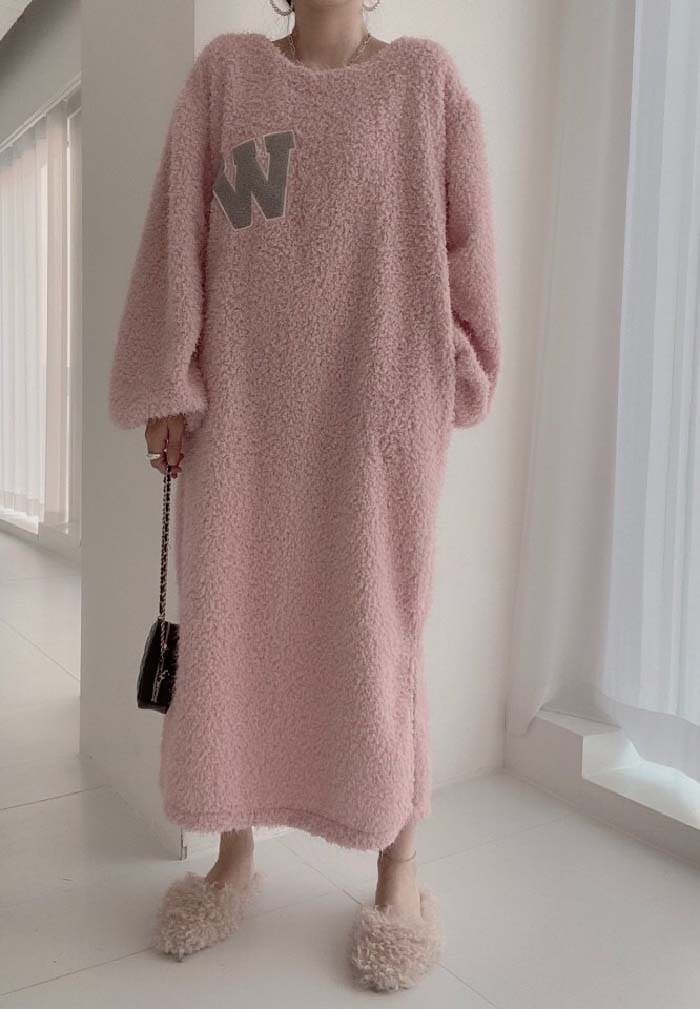 ワンピース レディース 長袖 ボア ワンピース ロング丈 春 秋 冬 チュニック もこもこ ロング丈ワンピ ゆったり シンプル カジュアル 体型カバー 柔らか 暖か あったか 大人可愛い 女性らし