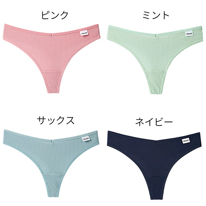 Tバック レディース プチプラ 綿 コットン リブあみ ストレッチ レースなし 快適 柔らか シンプル 無地 スポーツ ショーツ インナー ジム 黒 白 緑 青 紺 rt-006