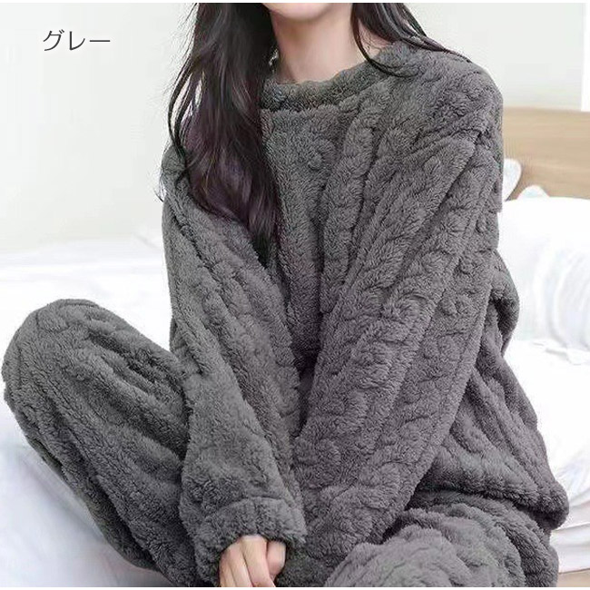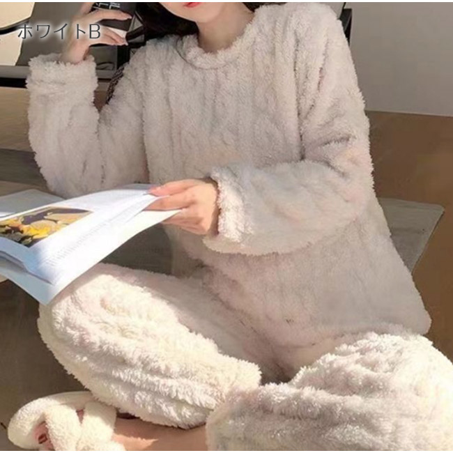 パジャマ ルームウェア レディース 上下セット モコモコ 防寒 シンプルパジャマ 寝巻き もこもこ あったか ゆったり 暖か 部屋着