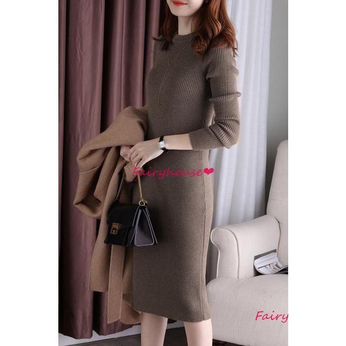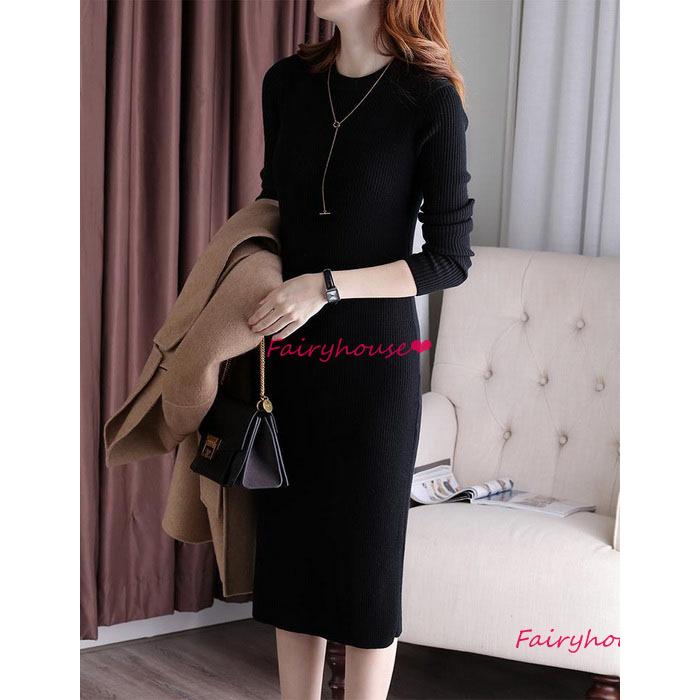 新作登場 ニットワンピース レディース 膝丈ワンピース 秋冬新作 長袖ワンピース タイトニットスカート ニット セーター オシャレ韓国風 大人上品 着痩せ