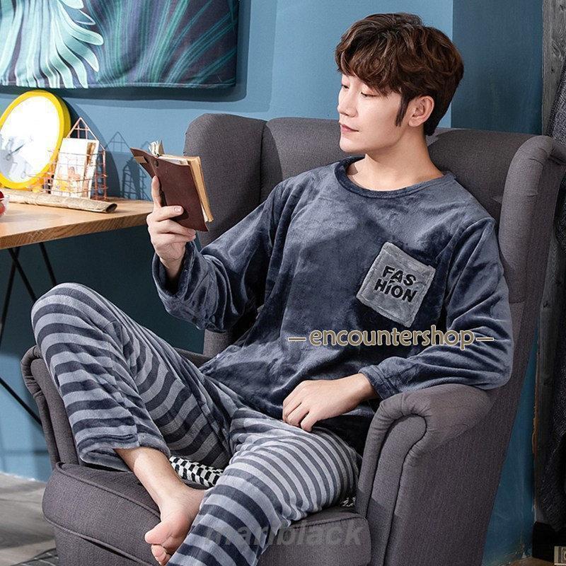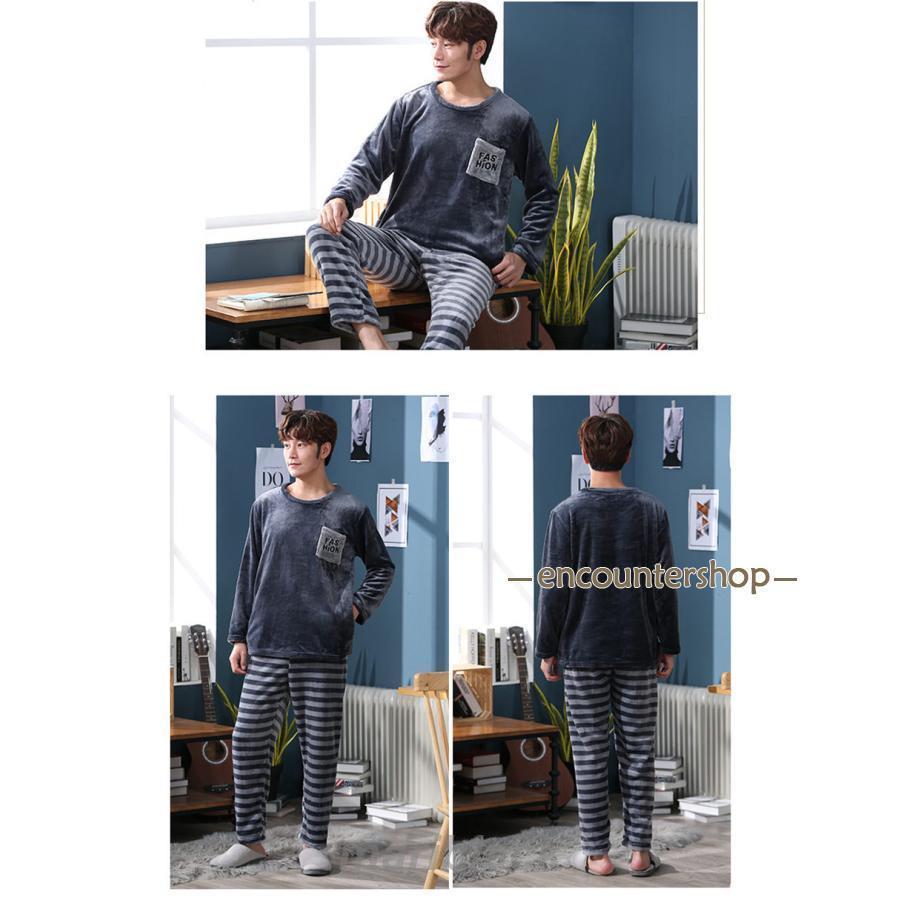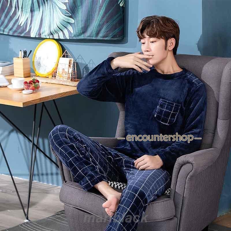 厚手パジャマ パジャマ メンズ 上下セット あったか ルームウェア 寝巻き 部屋着 厚手 男性用 もこもこ 秋 冬 長袖 ズボン ふわふわ 裏起毛