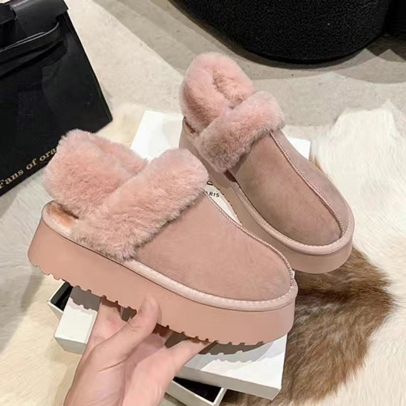 接触温感 ムートンブーツ 韓国人気 レディース モフモフ スリッポン 厚底 プラットフォームソー ムートンブーツ