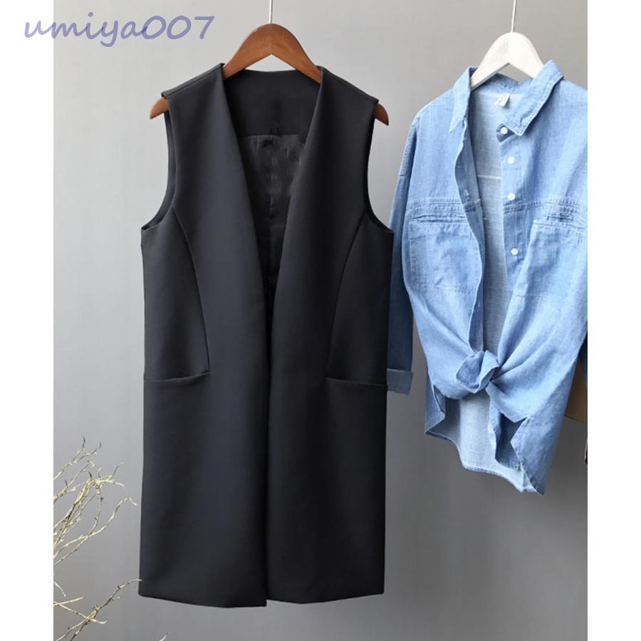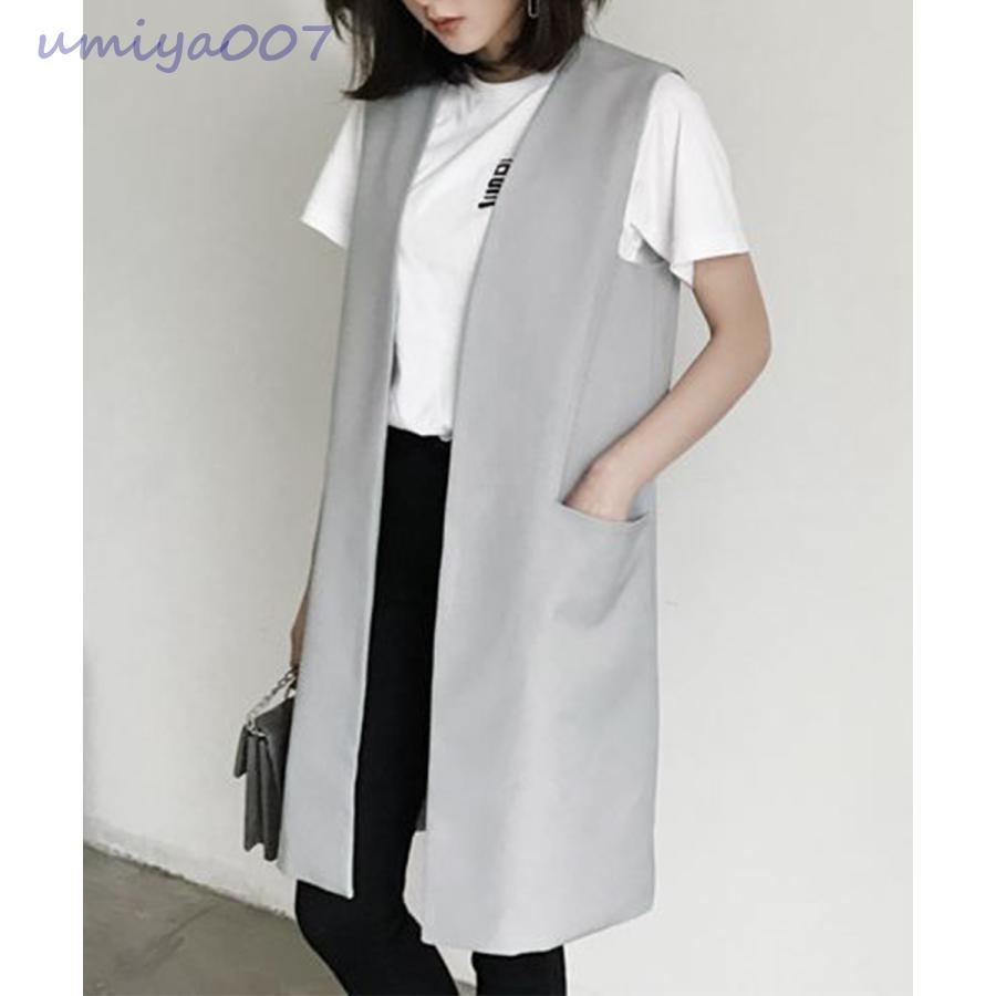ロング テーラードジレ レディース韓国風 ベスト
