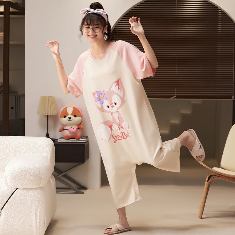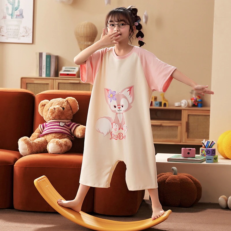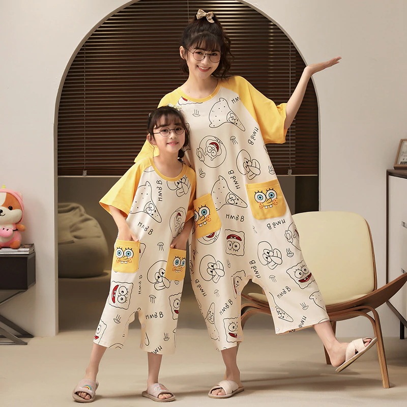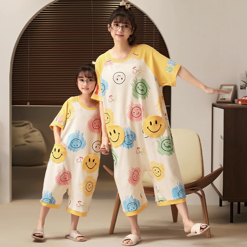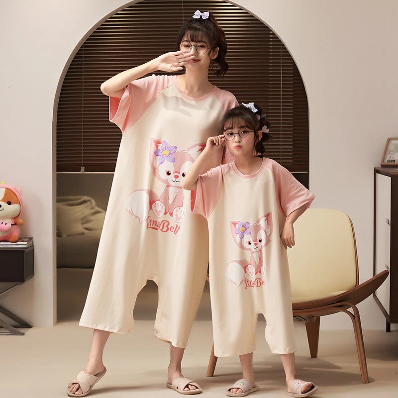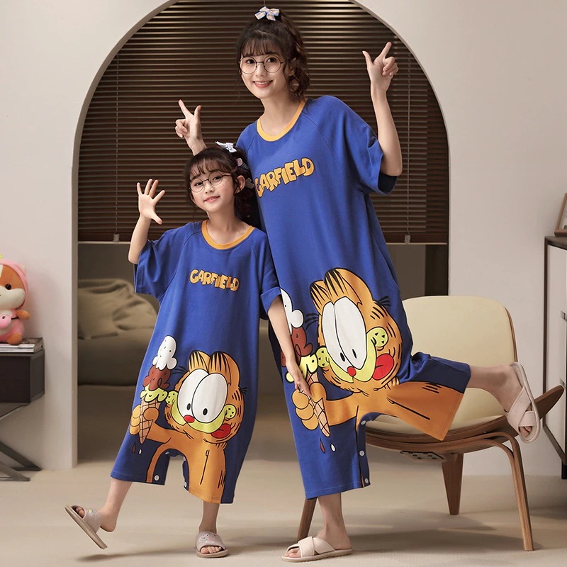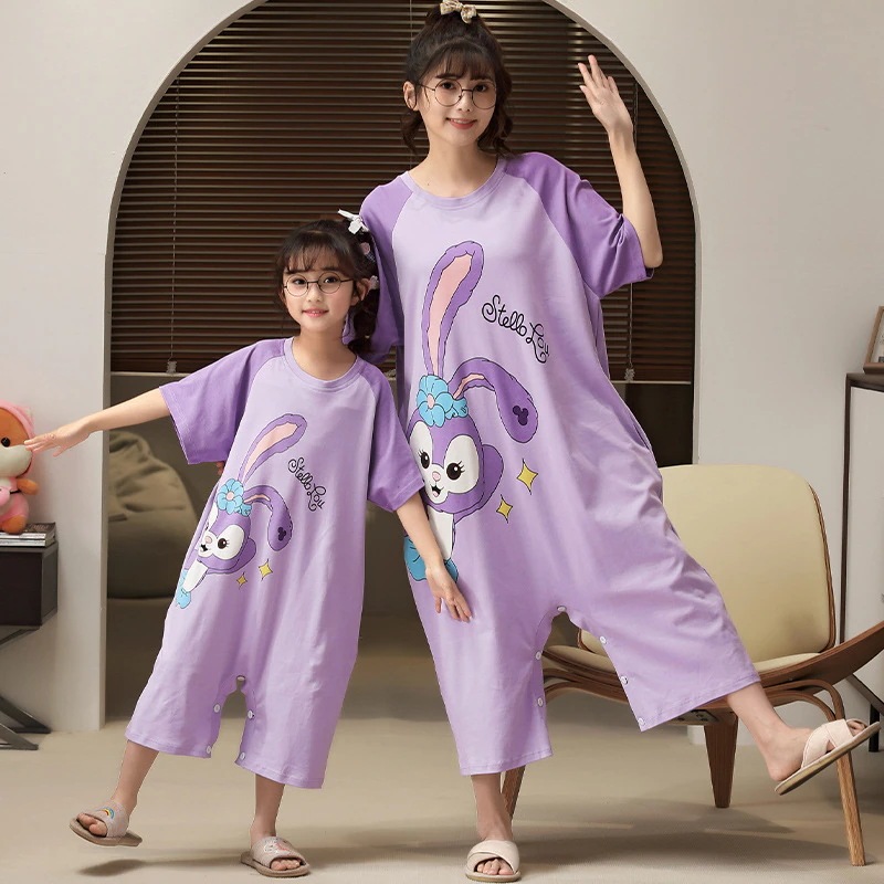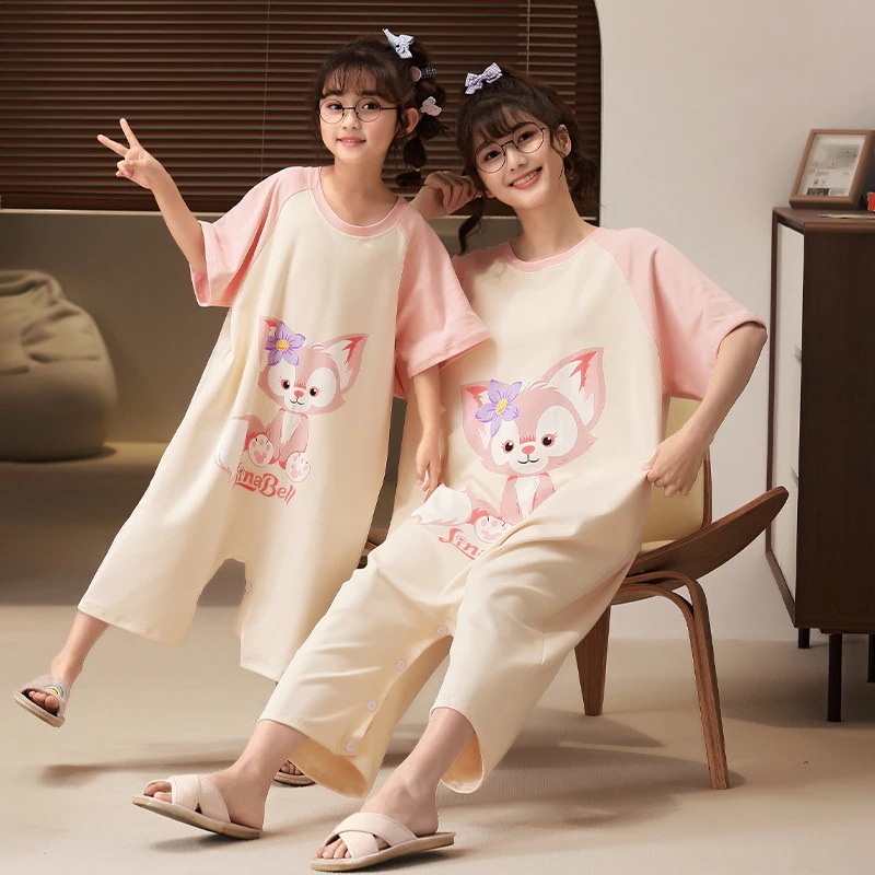 夏の純綿半袖ャマ女の子と子供用漫画大きい母と娘のネグリジェ親子着用ホーム服秋 パジャマ