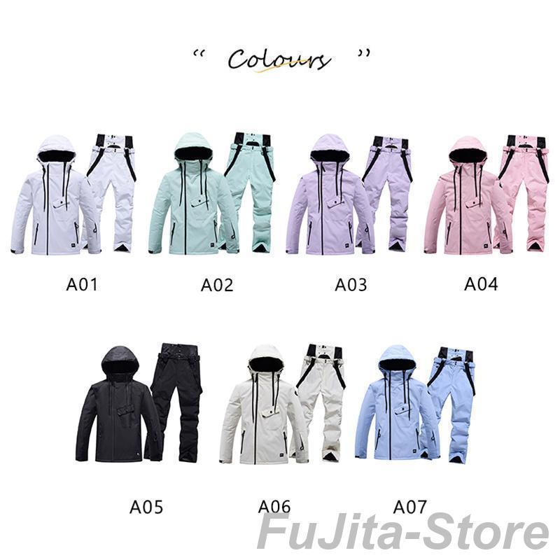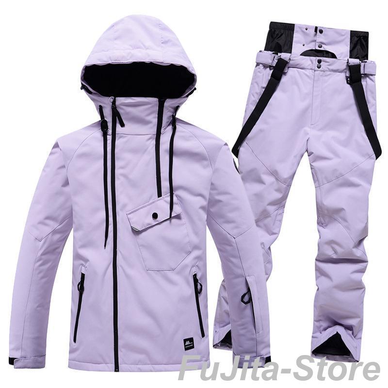 スキーウェア スノーボードウェア 上下セット 無地 ユニセックス ジャケット オーバーオール ウェア 動きやすい 撥水 厚手 防寒 防風 レディースウェア