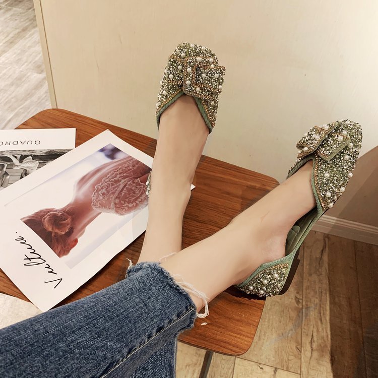 パンプス レディース ローファー フラットシューズ 靴 パール付き リボン 柔らかい キラキラ 結婚 その他 パンプス