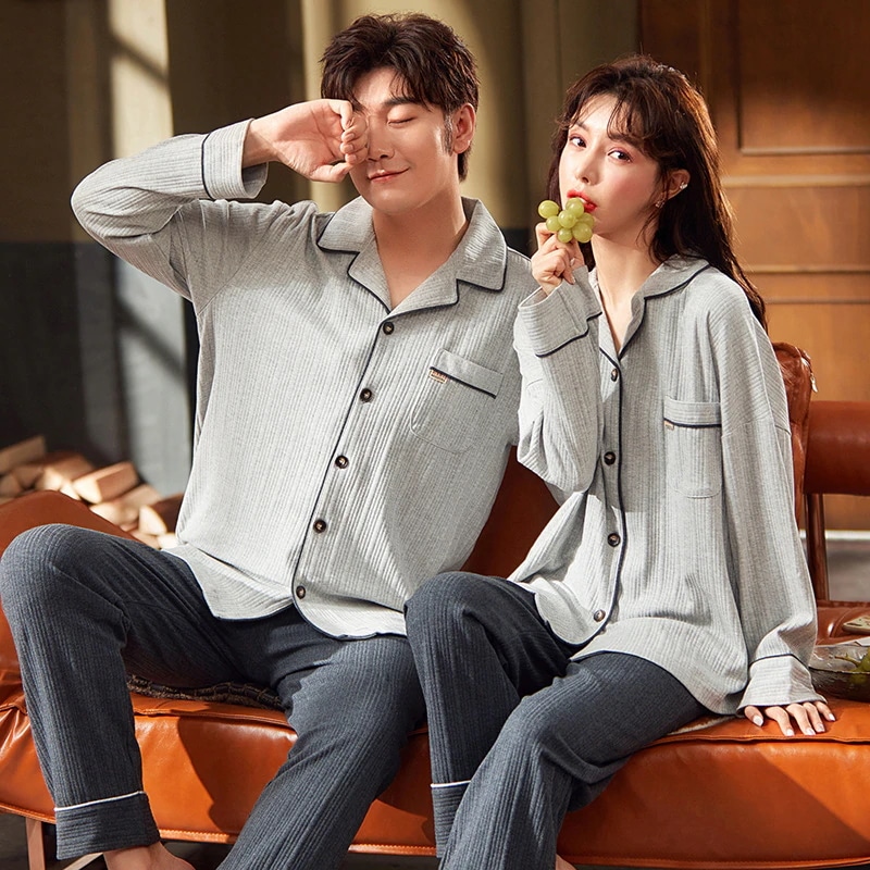 気質 パジャマ カップルペアルック ルームウェア 春秋冬 ペアパジャマ長袖パジャマ韓国風 大きいサイズ 前開きルームウェア レディース メンズ 部屋着 シンプル